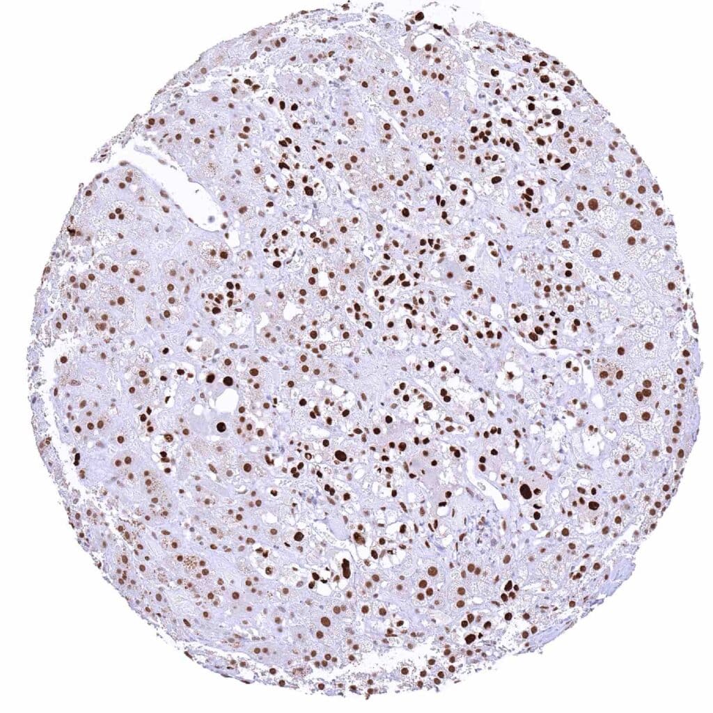 Kidney – Papillary renal cell carcinoma with strong 53BP1 immunostaining of tumor cells