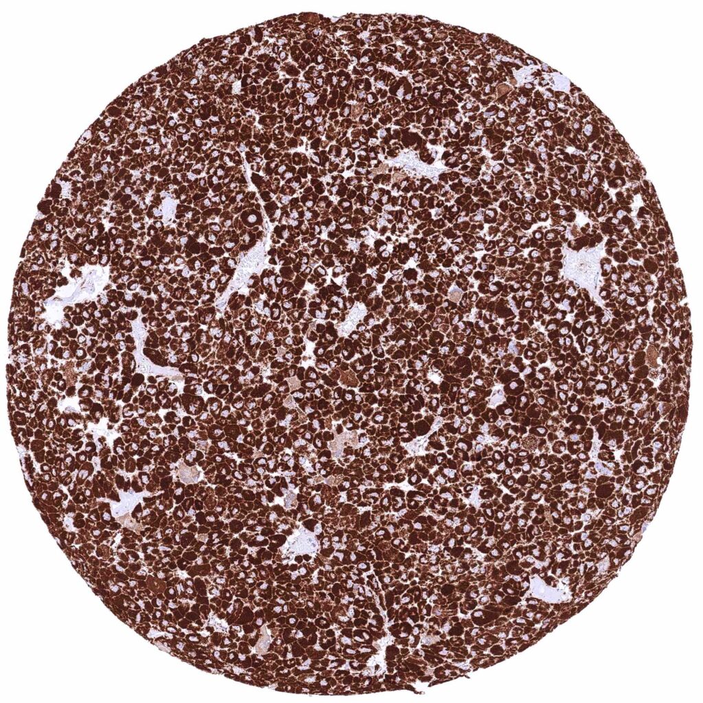Testis – Leydig cell tumor with strong cytoplasmic ATP5J immunostaining of tumor cells.