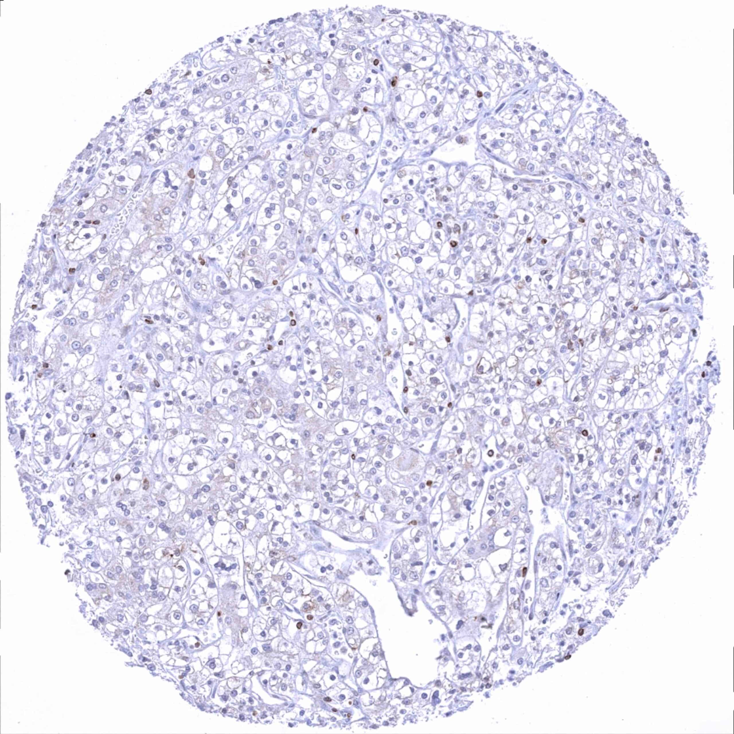 Kidney – Clear cell renal cell carcinoma with faint Bcl-2 staining of a fraction of tumor cells. Distinct Bcl-2 positivity of many tumor infiltrating lymphocytes_