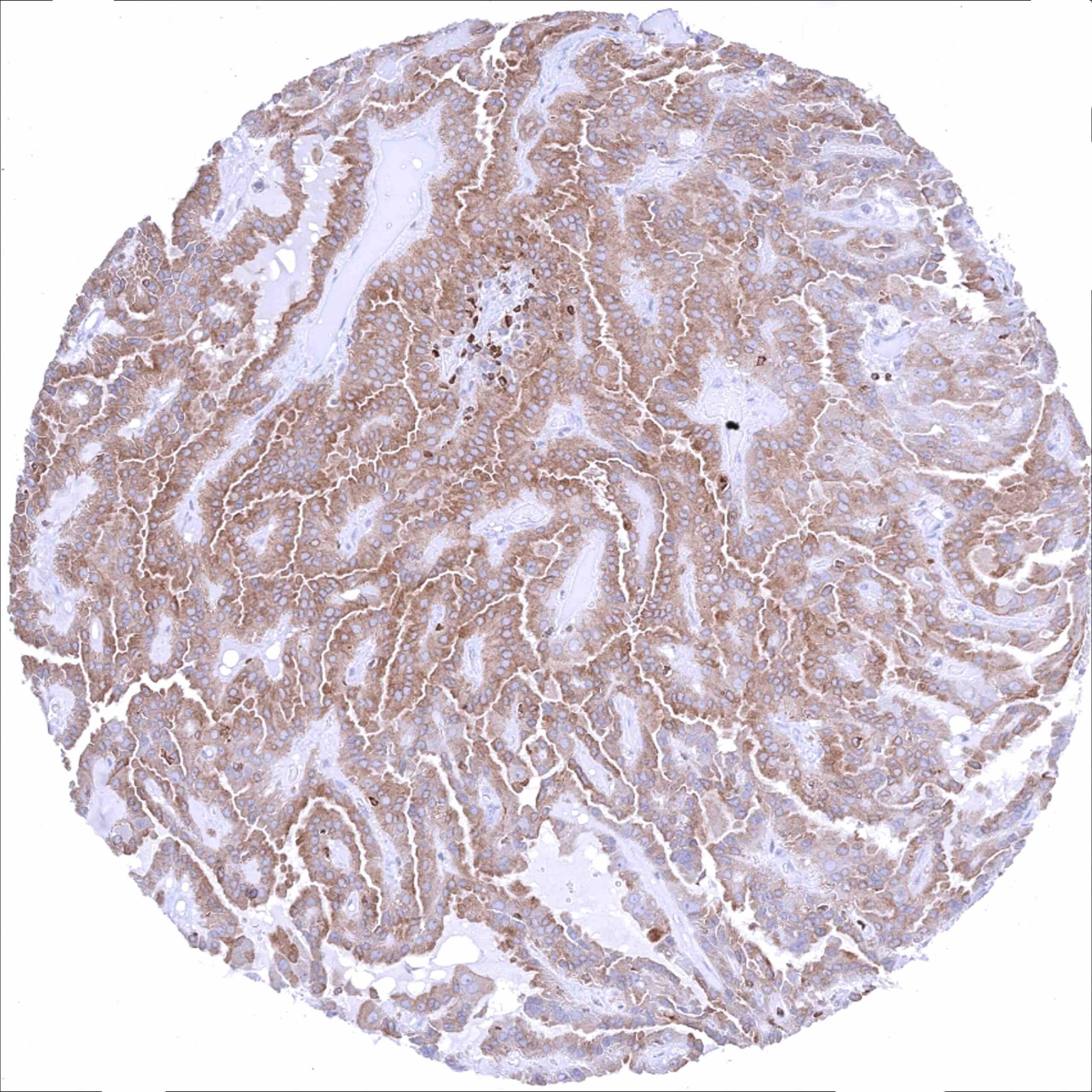Thyroid – Papillary cancer with weak to moderate Bcl-2 staining of most tumor cells_