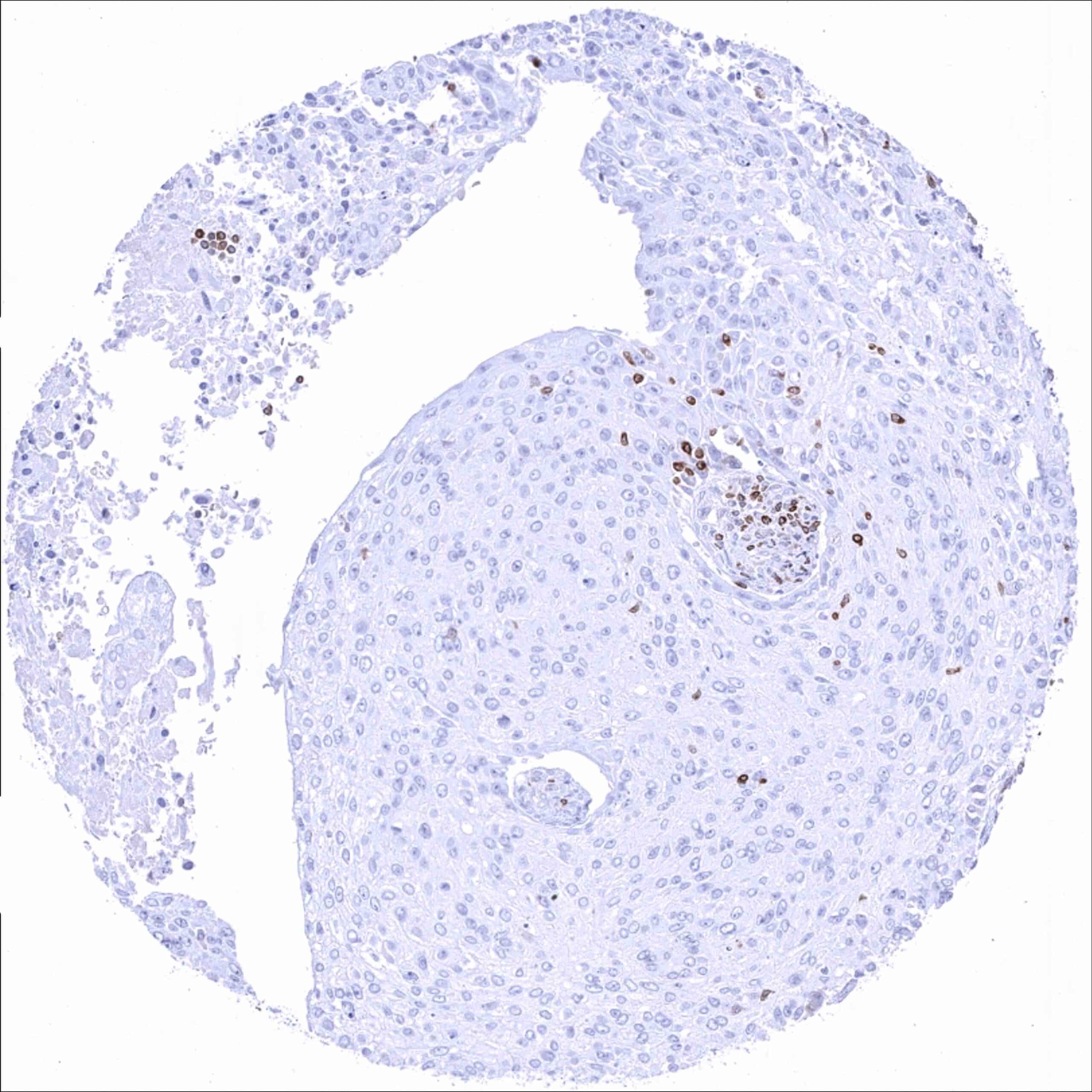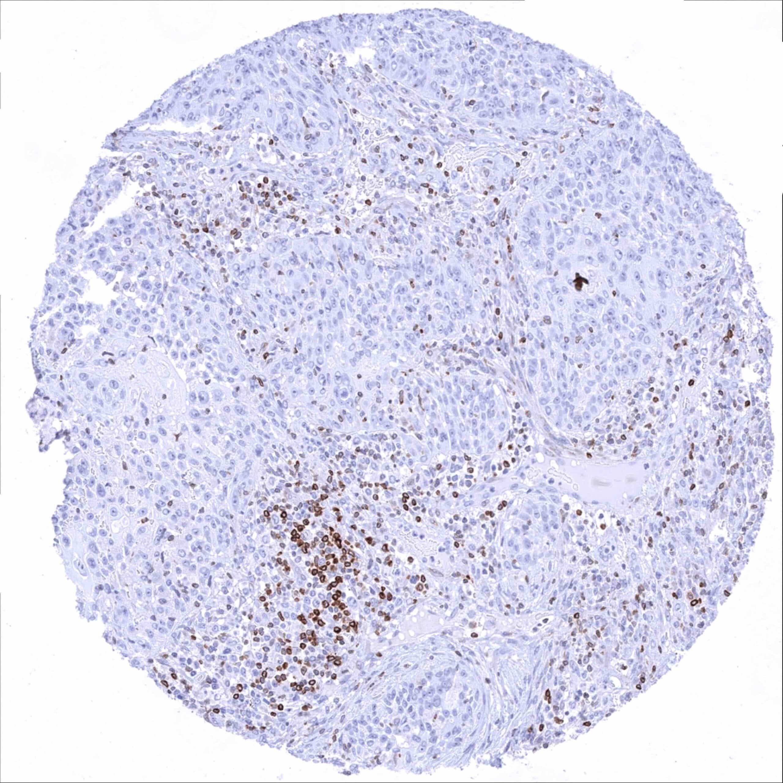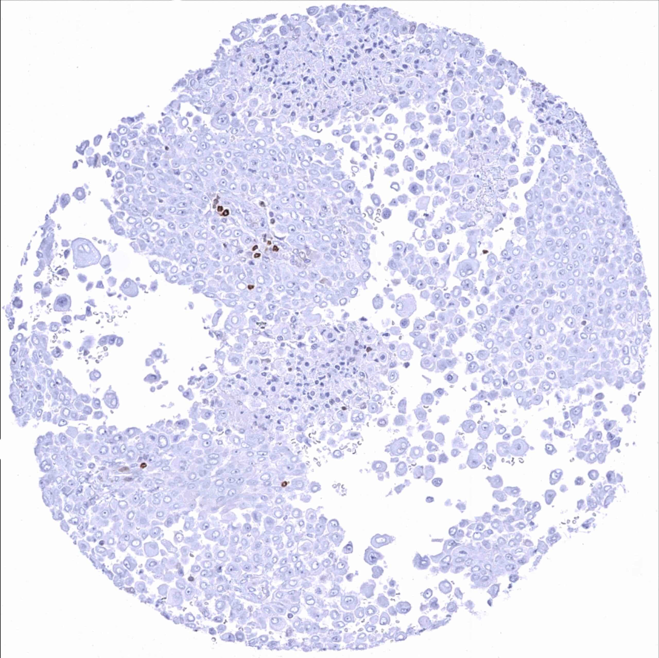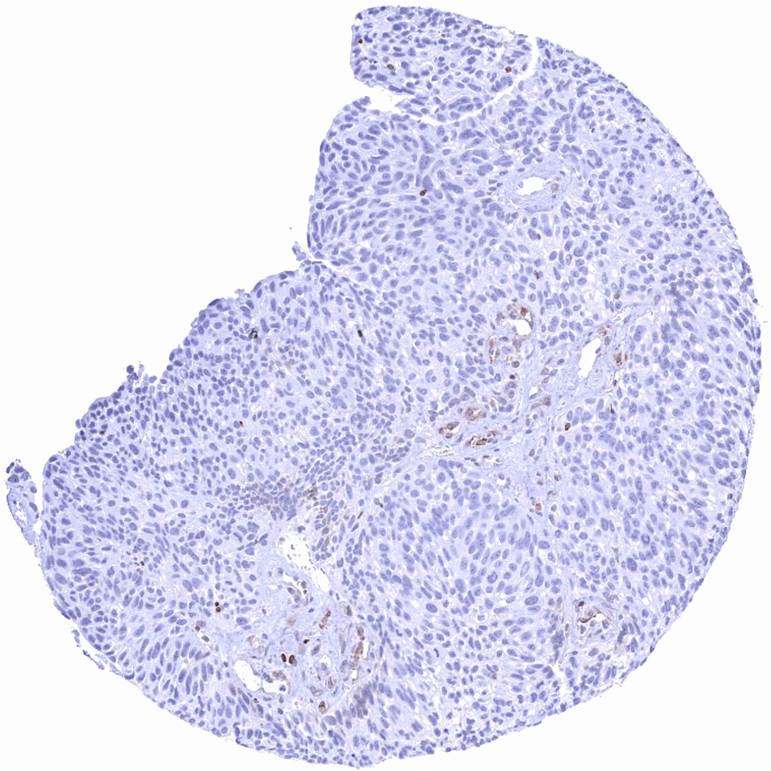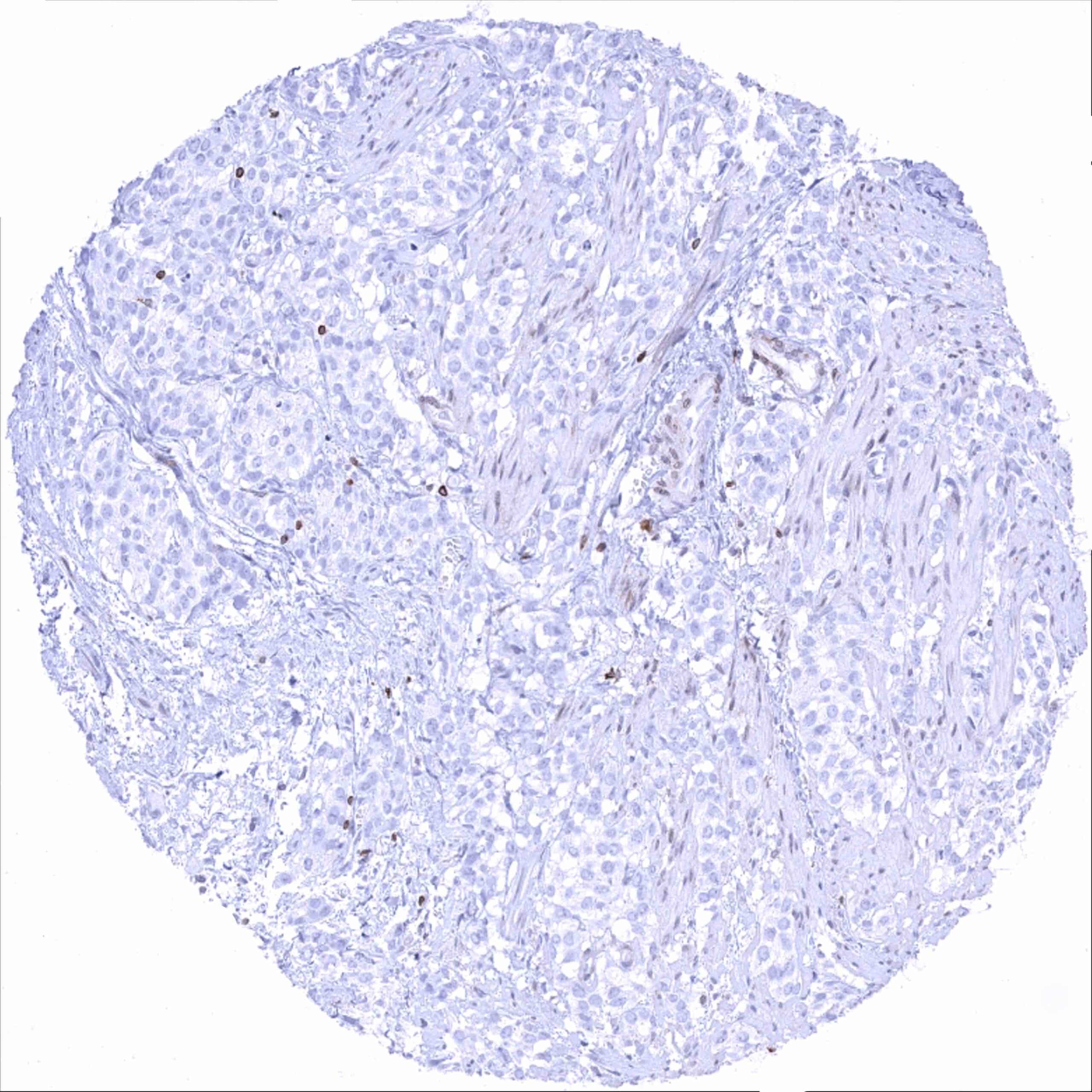 Urinary bladder – Bcl-2 negative muscle-invasive urothelial carcinoma. Distinct Bcl-2 positivity of many tumor infiltrating lymphocytes_