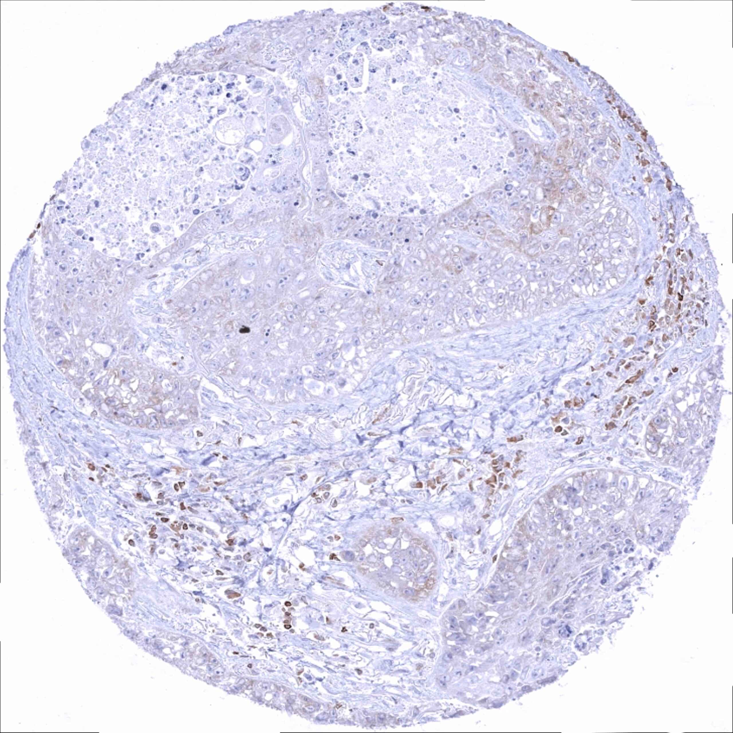 Lung – Squamous cell carcinoma with weak Bcl-2 staining of most tumor cells_
