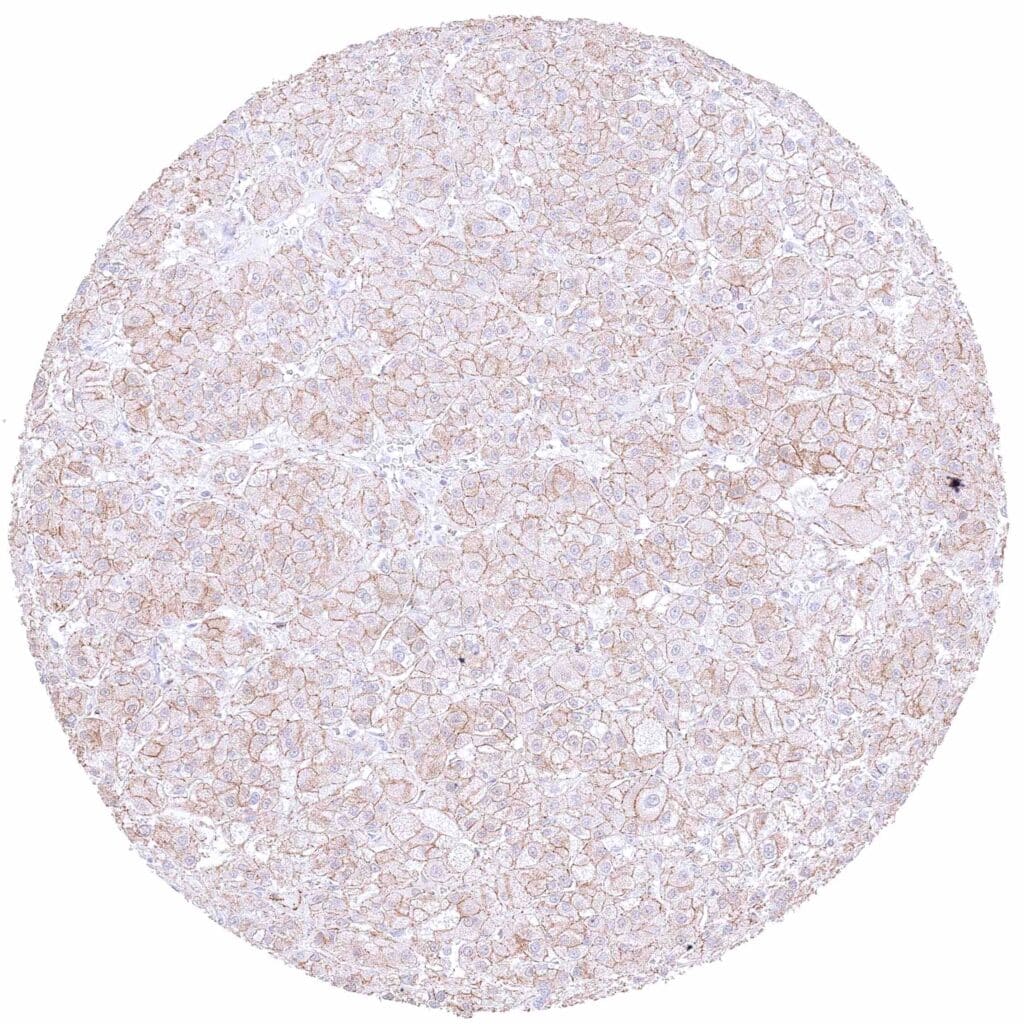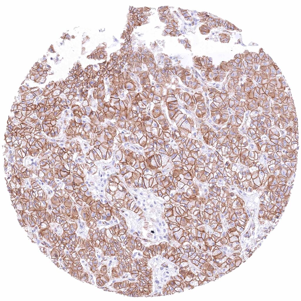 Liver – Hepatocellular carcinoma with strong membranous β-Catenin positivity of tumor cells.