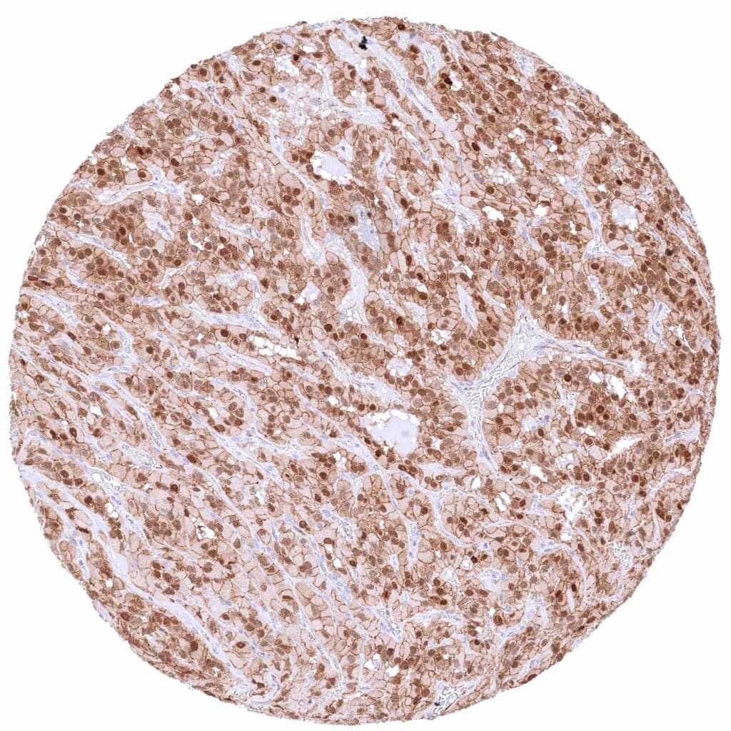 Kidney – Chromophobe renal cell carcinoma with a moderate to strong β-Catenin staining of tumor cells.