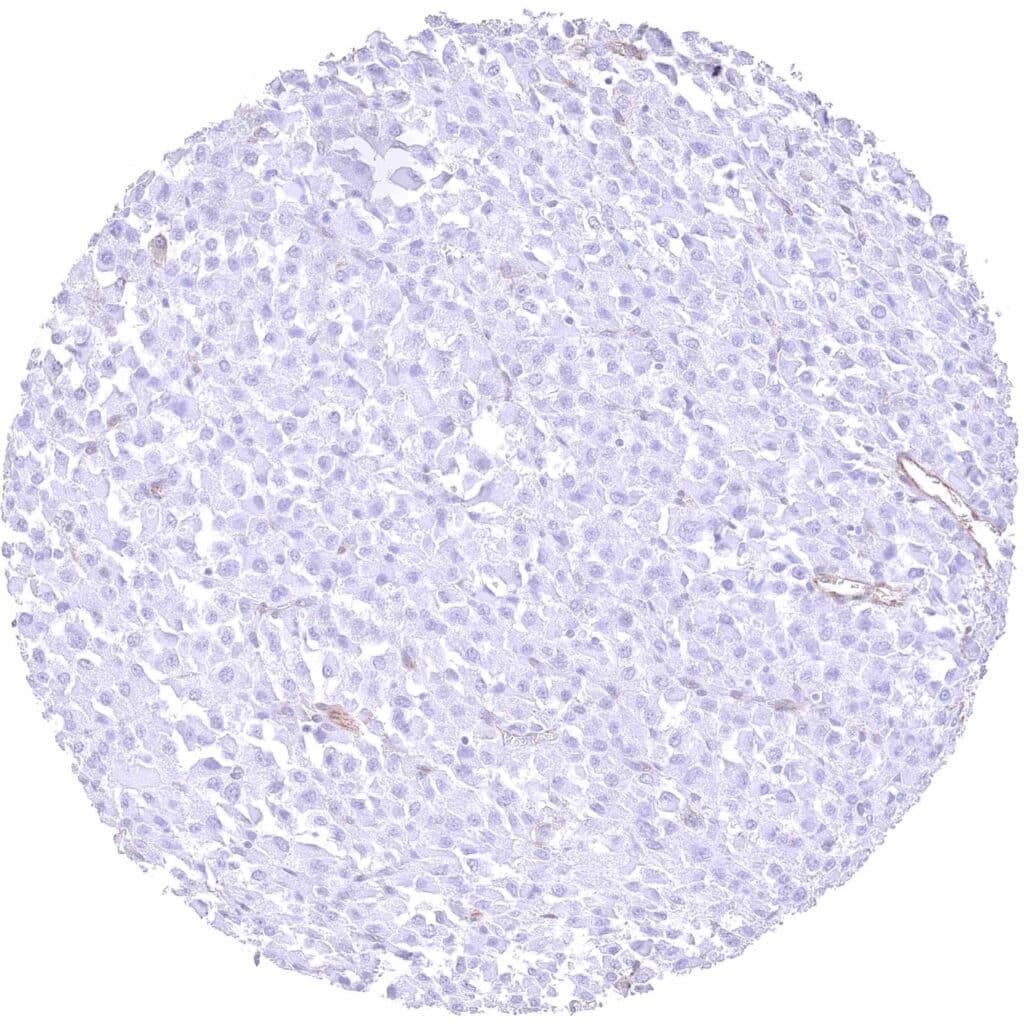 Testis – Leydig cell tumor with weak membranous and strong cytoplasmic and nuclear β-Catenin staining of tumor cells.