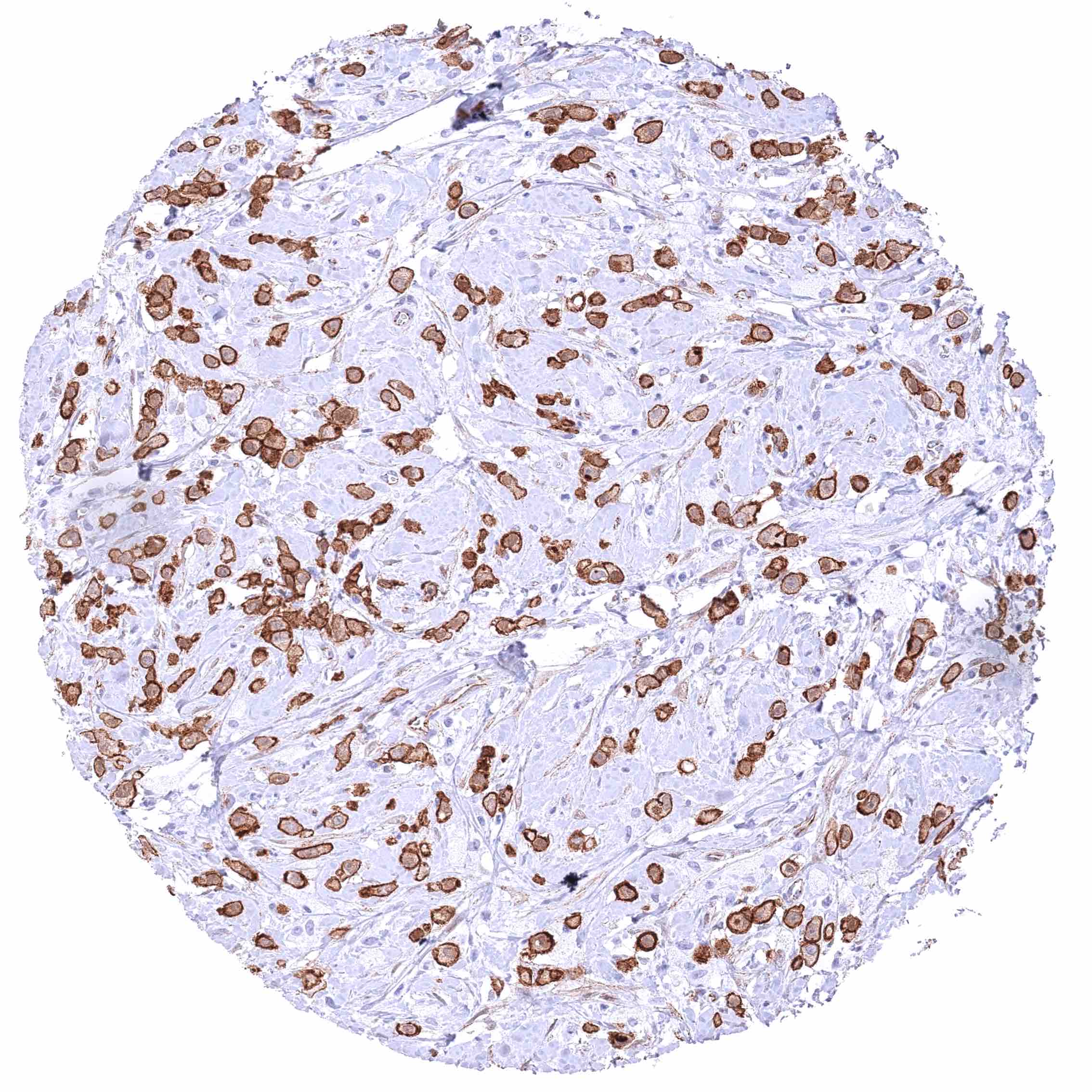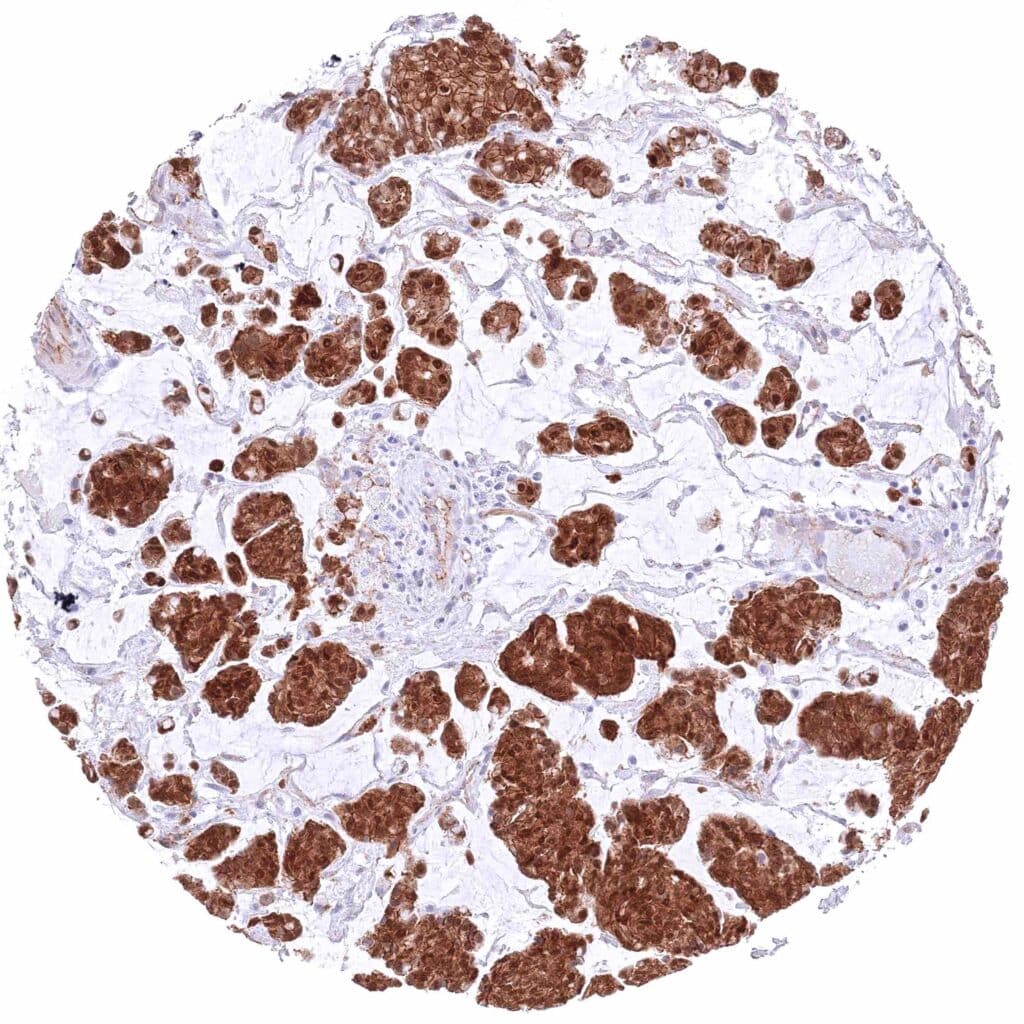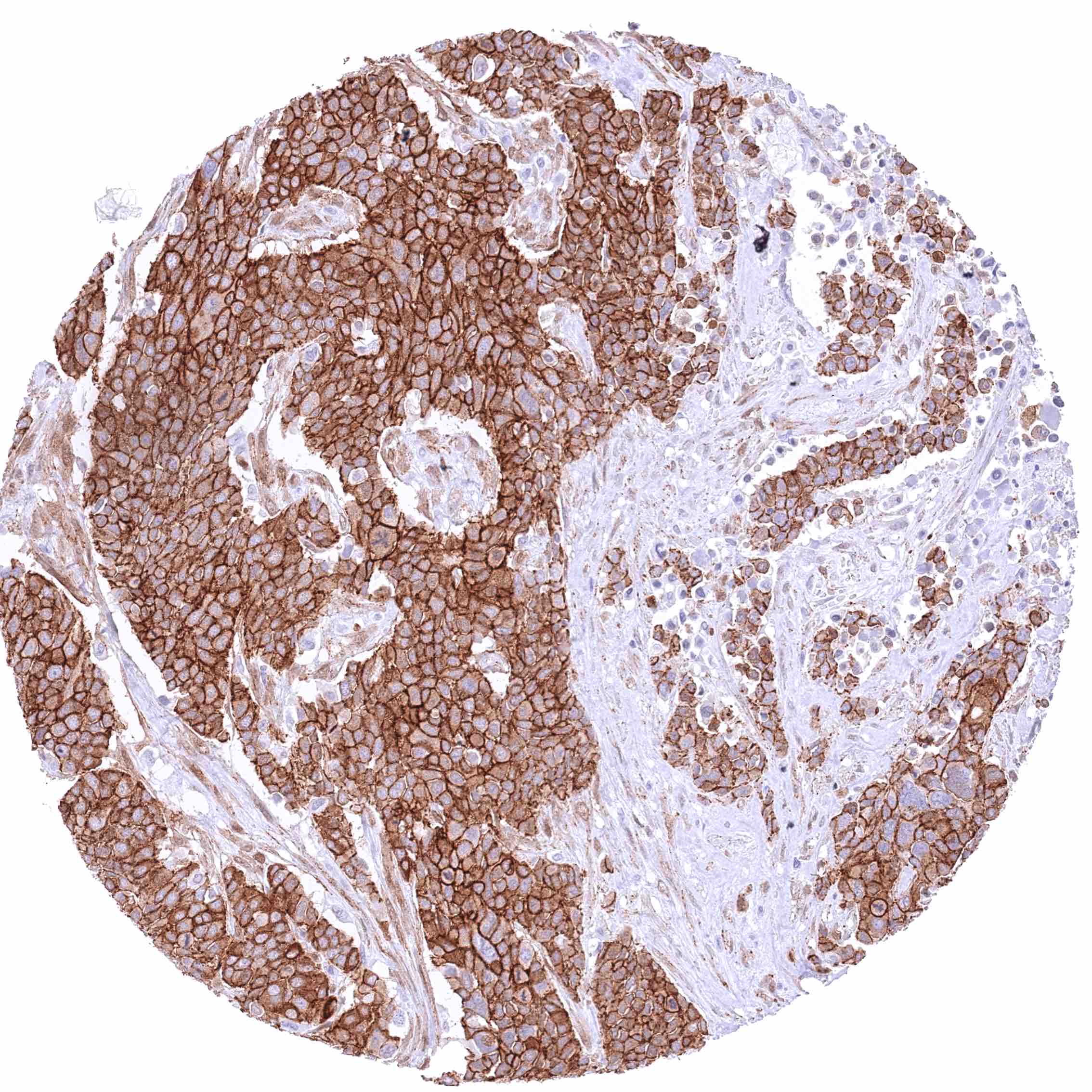 Breast – Invasive breast cancer of no special type (NST) with strong membranous β-Catenin staining of tumor cells.