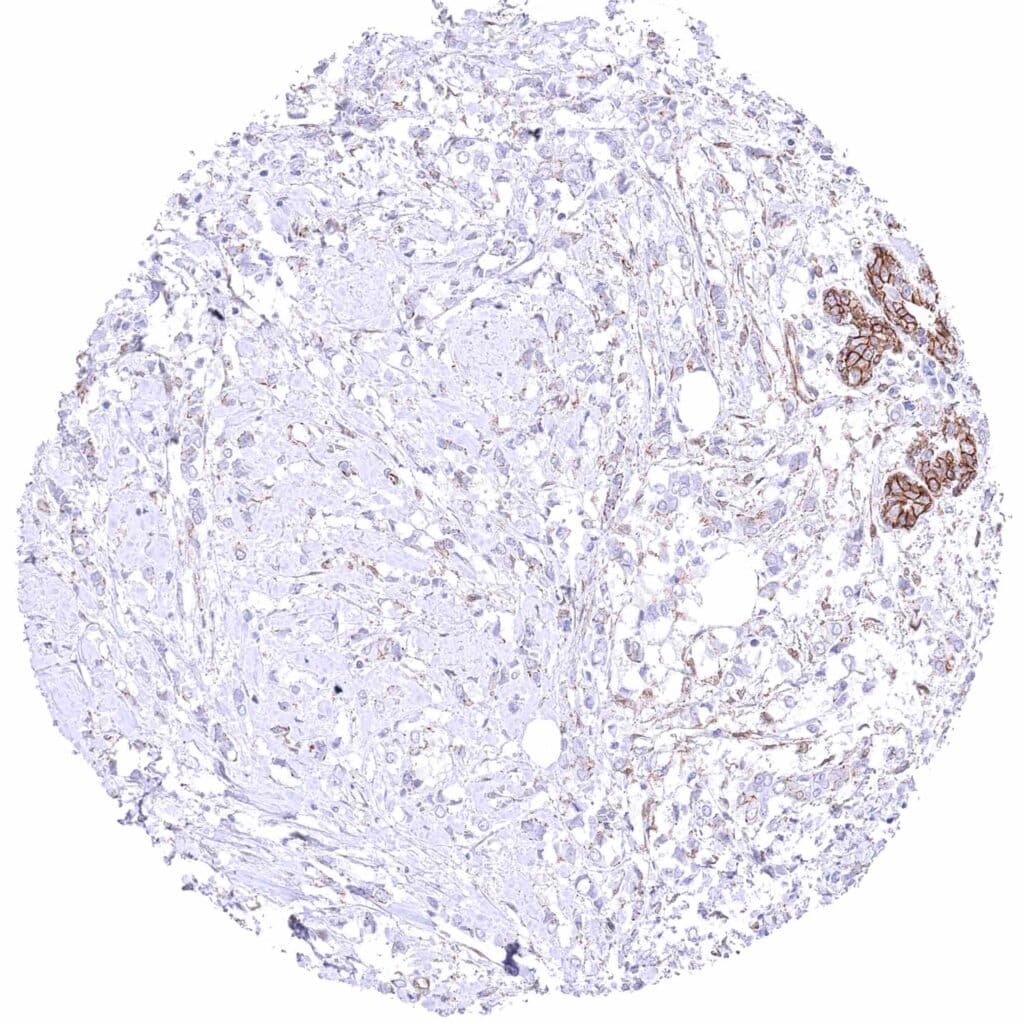 Breast – Invasive lobular breast cancer with only a faint membranous β-Catenin staining of tumor cells.