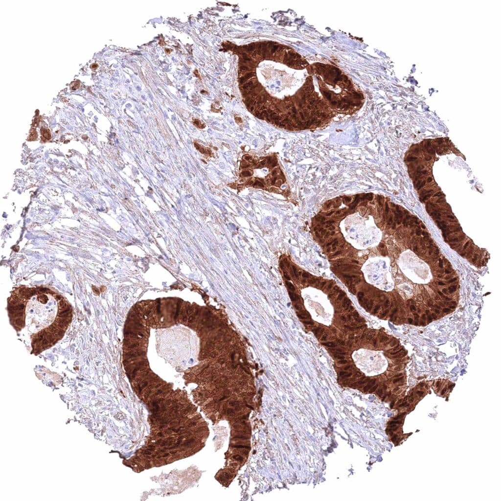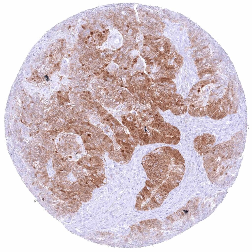 Colon – Colorectal adenocarcinoma with moderate membranous and cytoplasmic but strong nuclear β-Catenin staining of tumor cells.