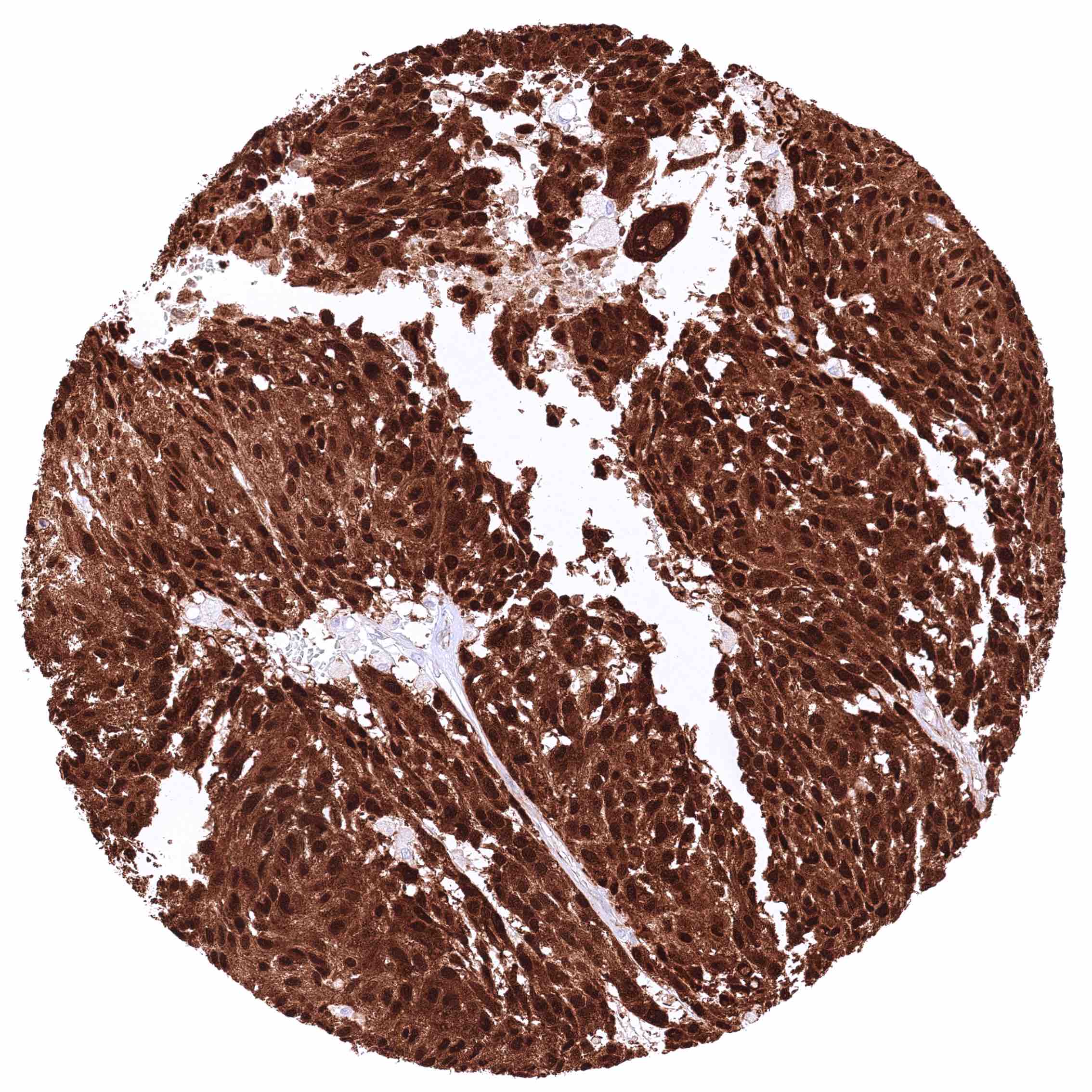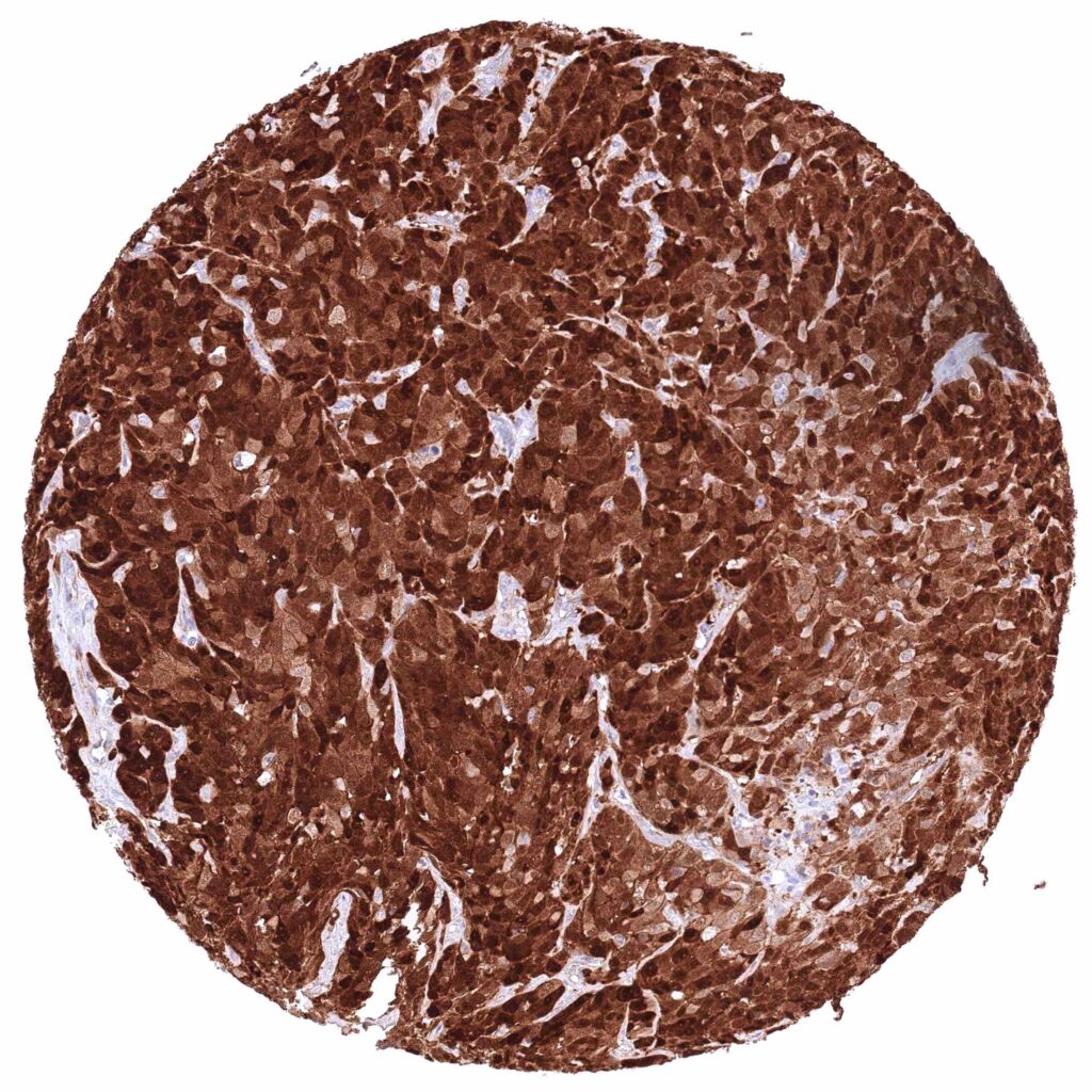 Skin – Malignant melanoma with strong cytoplasmic and nuclear β-Catenin staining of tumor cells.