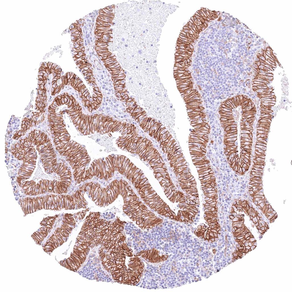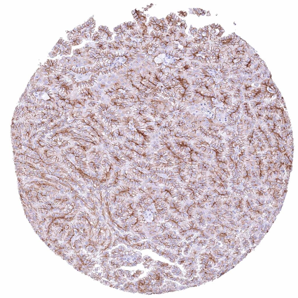 Kidney – Papillary renal cell carcinoma with a distinct, predominantly basolateral β-Catenin staining of tumor cells.