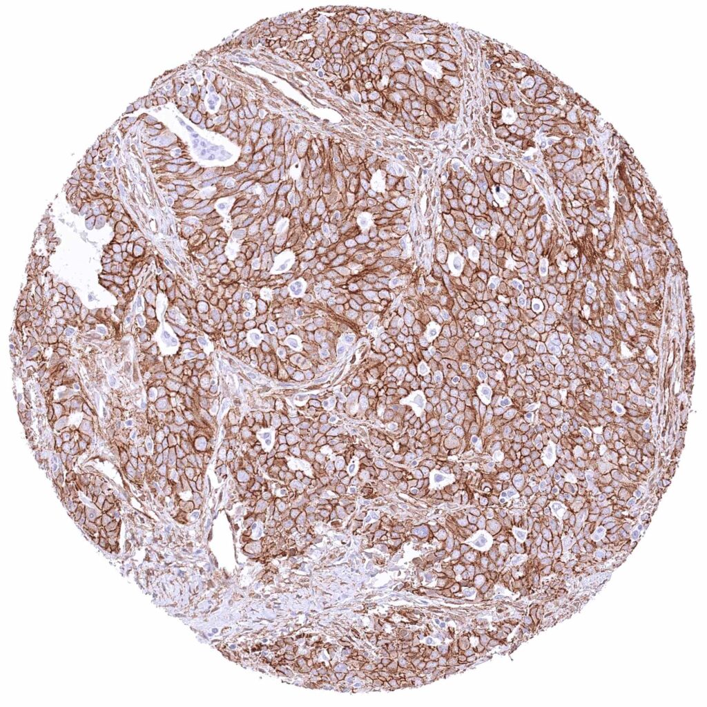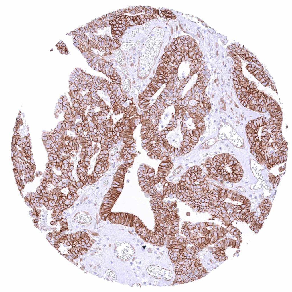 Ovary – Endometroid carcinoma with strong membranous β-Catenin staining of tumor cells.