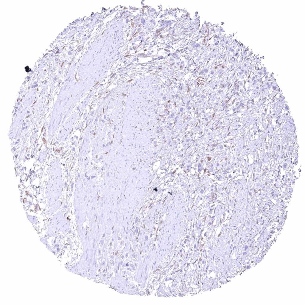 Stomach – Gastrointestinal stromal tumor (GIST) with weak membranous β-Catenin staining of tumor cells.