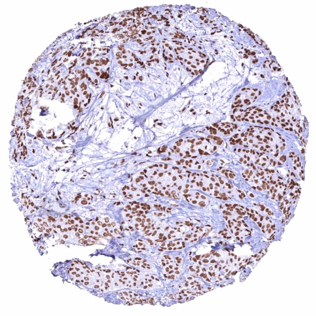 Breast – Invasive breast cancer of no special type (NST) with intense BRD4 positivity of tumor cells.