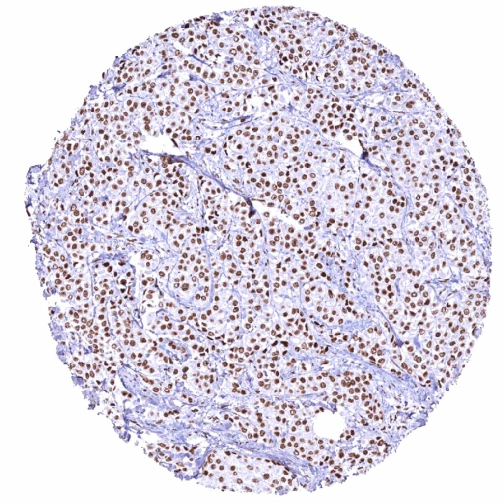 Breast – Invasive lobular breast cancer with strong BRD4 staining of cancer cells.