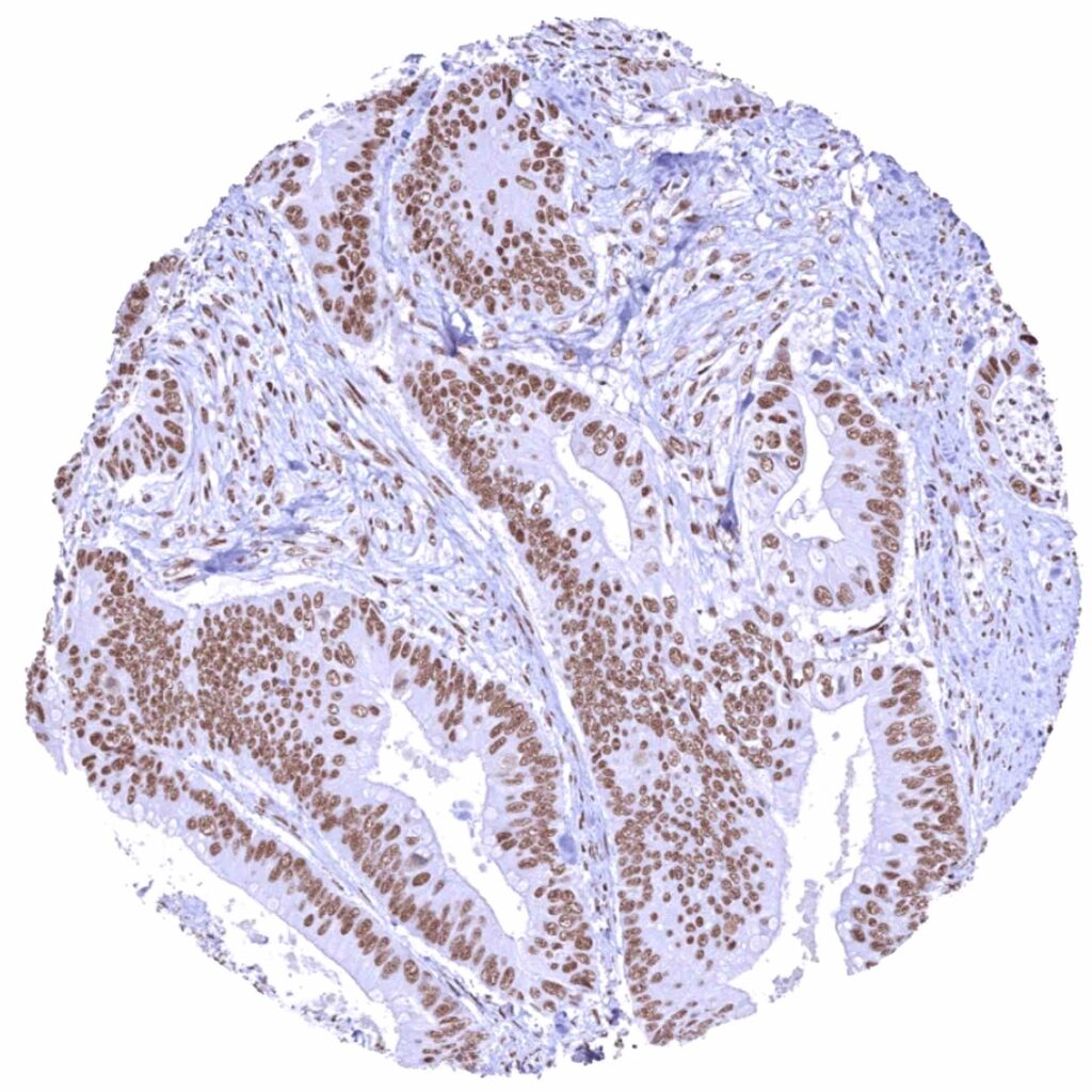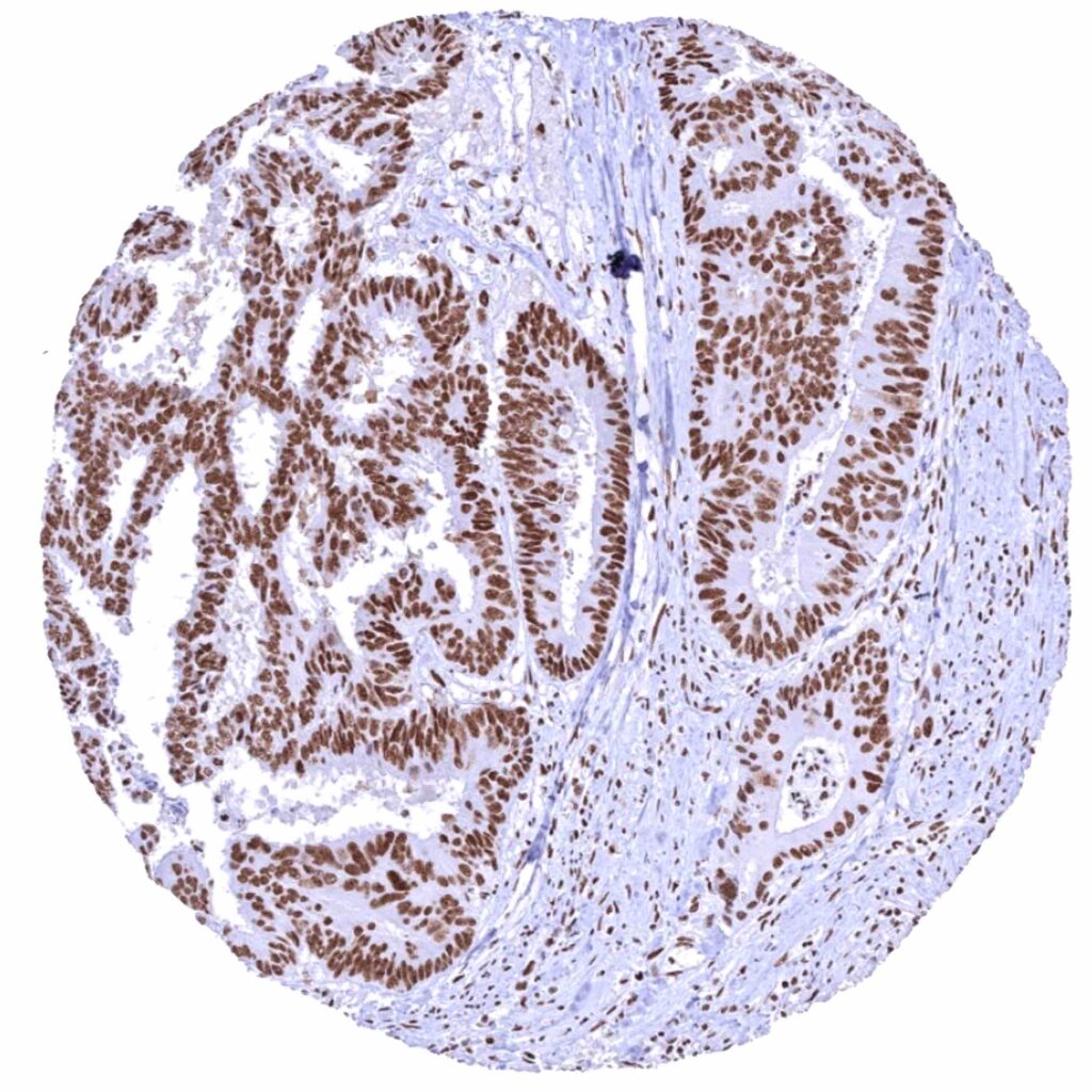Colon – Colorectal adenocarcinoma with intense BRD4 immunostaining of tumor cells.