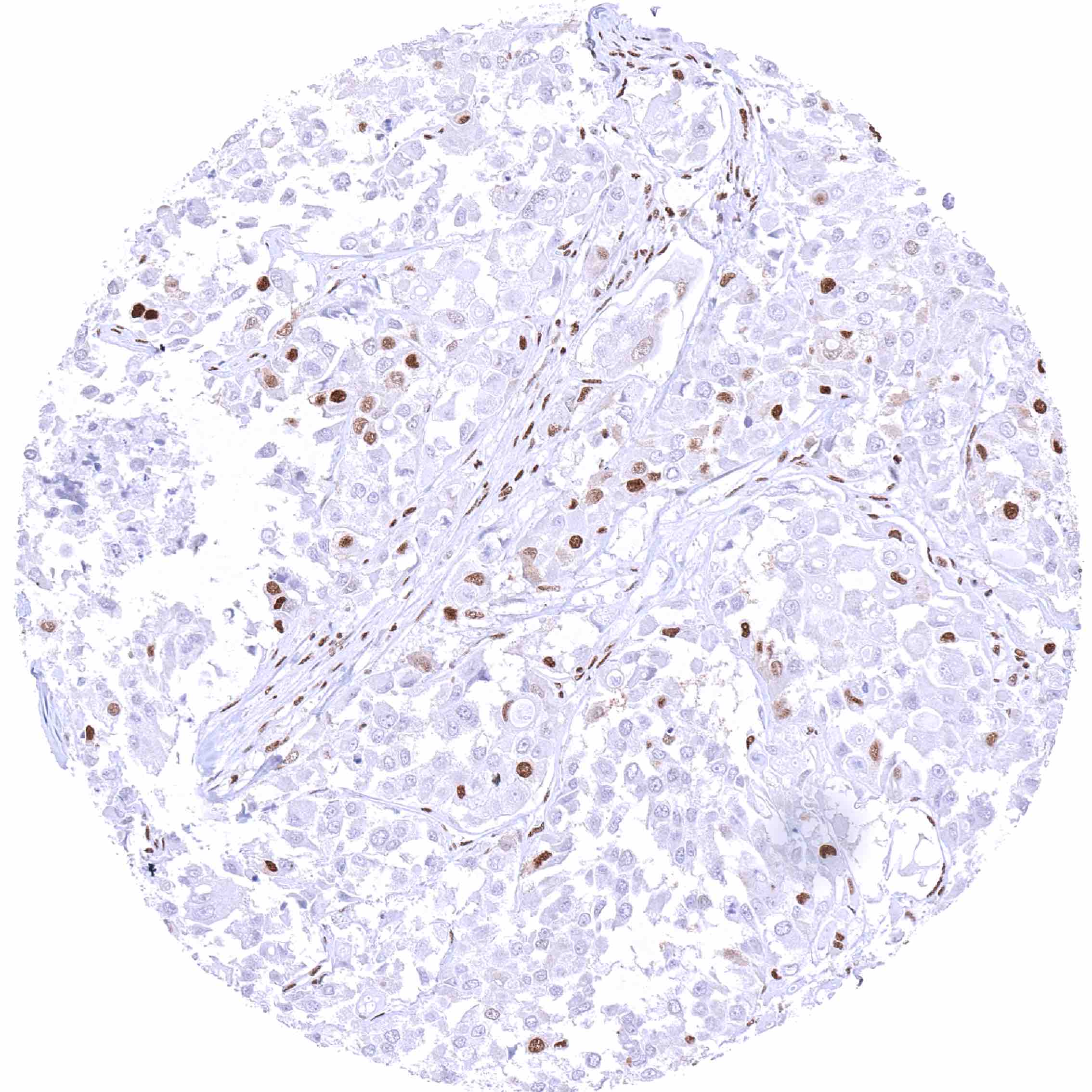 Kidney, pelvis – Invasive urothelial carcinoma with absence of BRD4 staining in most tumor cells while a small subset of cancer cells shows strong BRD4 positivity.