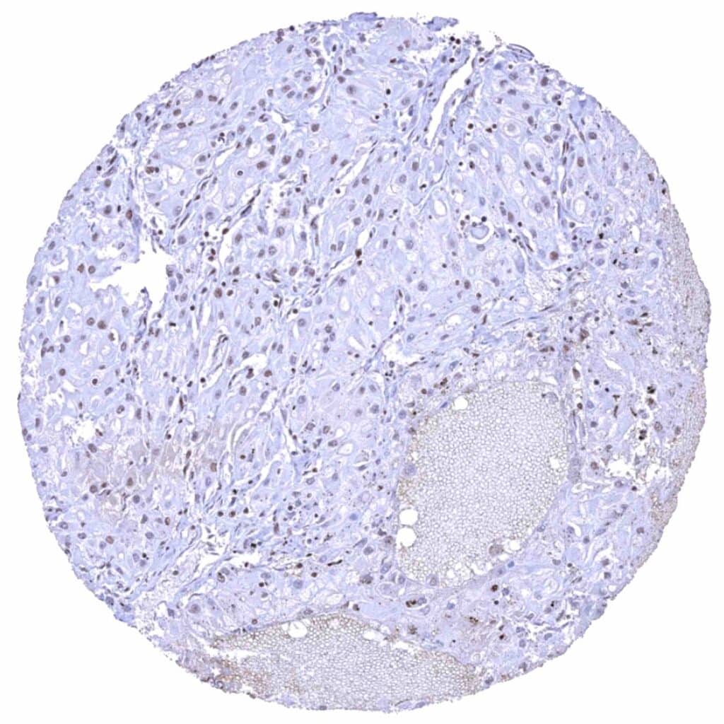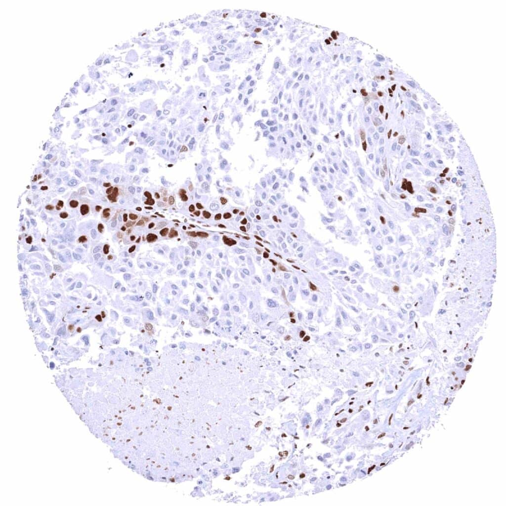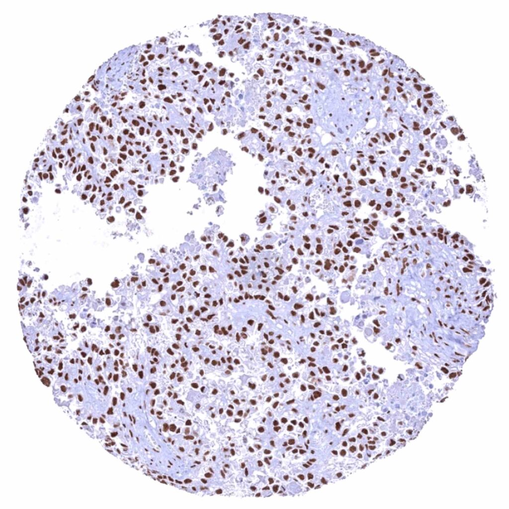 Lung – Squamous cell carcinoma with strong BRD4 staining of tumor cells.