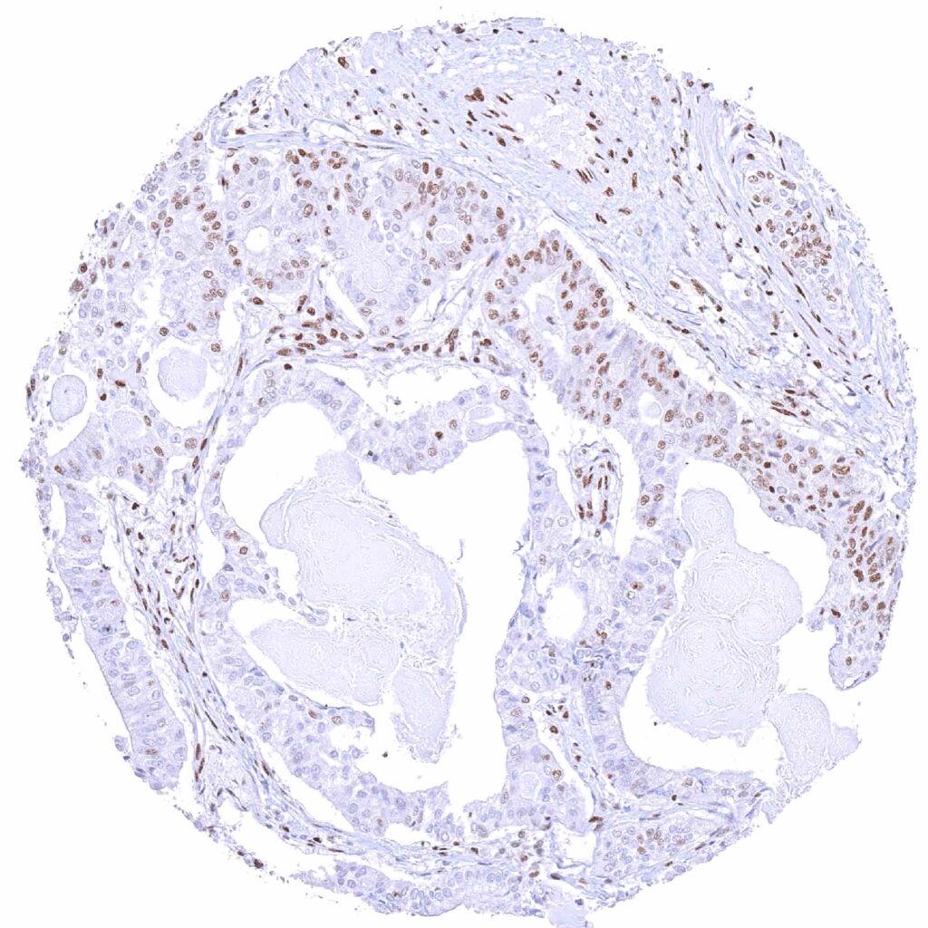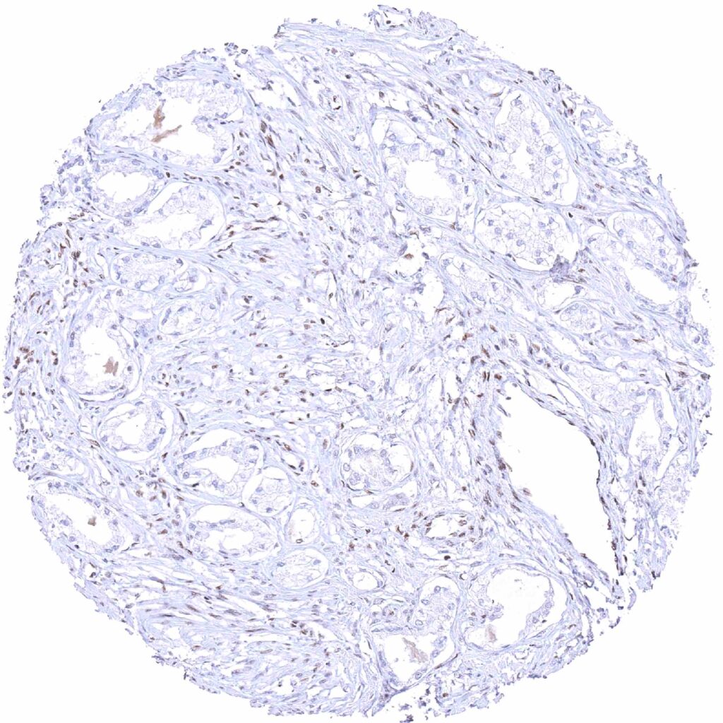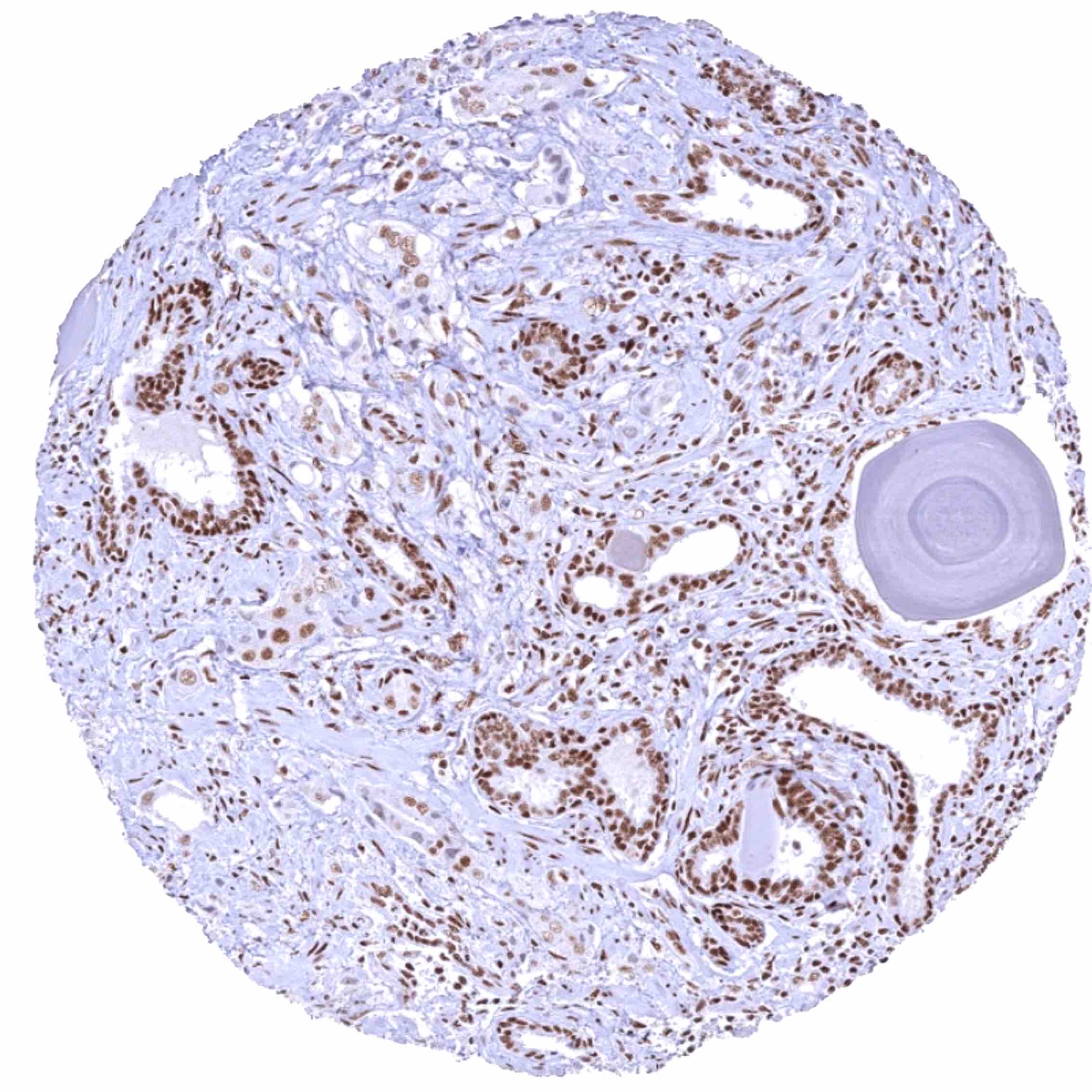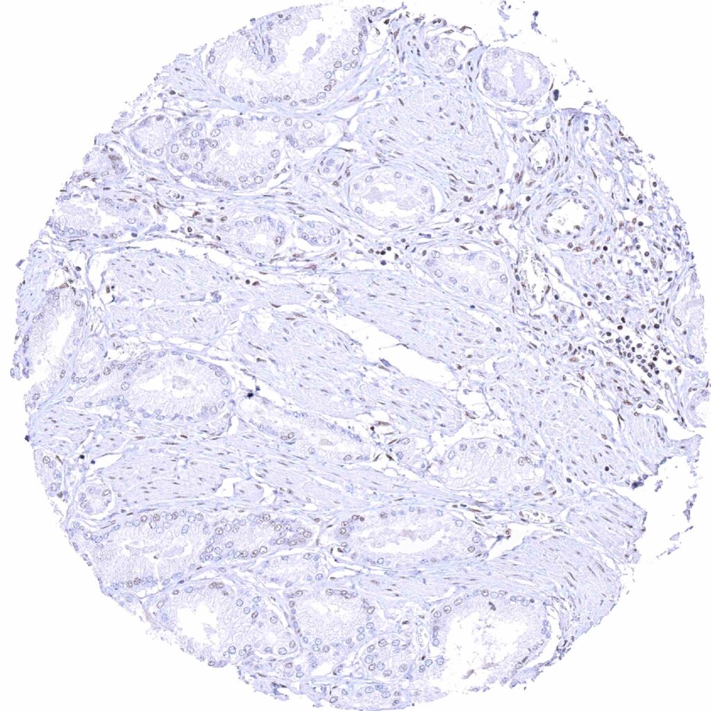 Prostate – BRD4 negative adenocarcinoma (Gleason 3+3=6). A nuclear BRD4 staining is only seen in stroma cells.