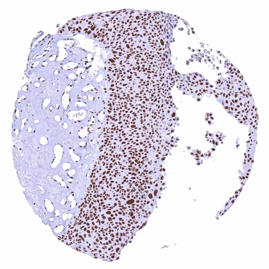 Urinary bladder – Muscle-invasive urothelial carcinoma with intense BRD4 staining of all tumor cells.