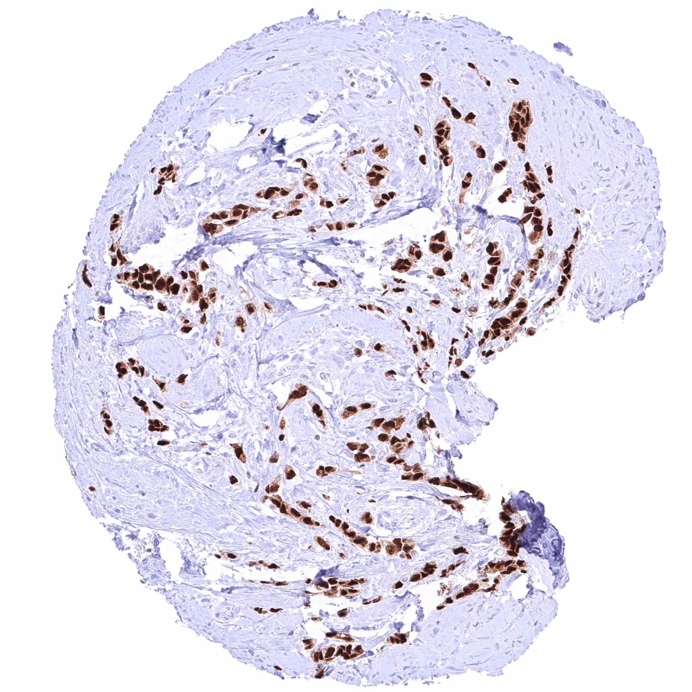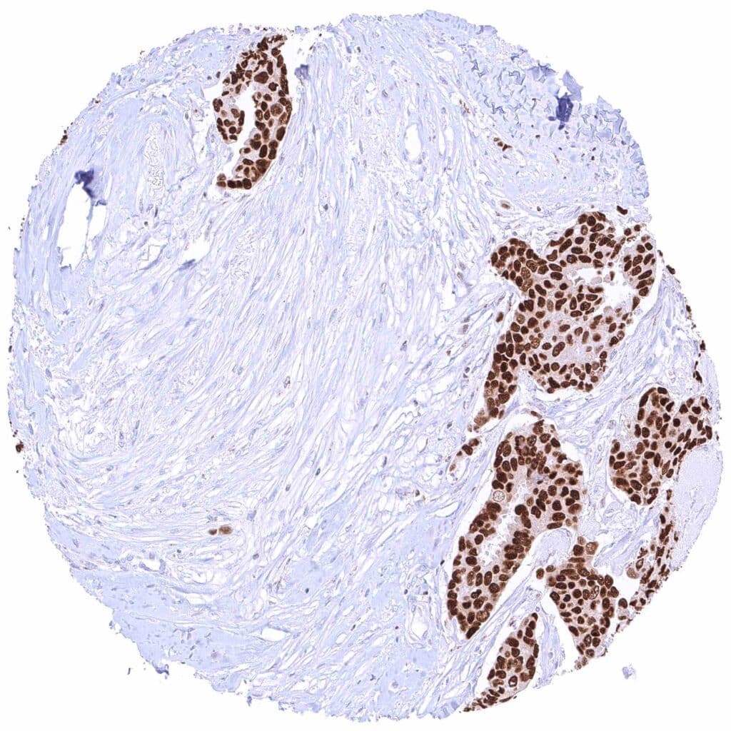 Breast – Invasive breast cancer of no special type (NST) with strong nuclear GATA3 staining of tumor cells.