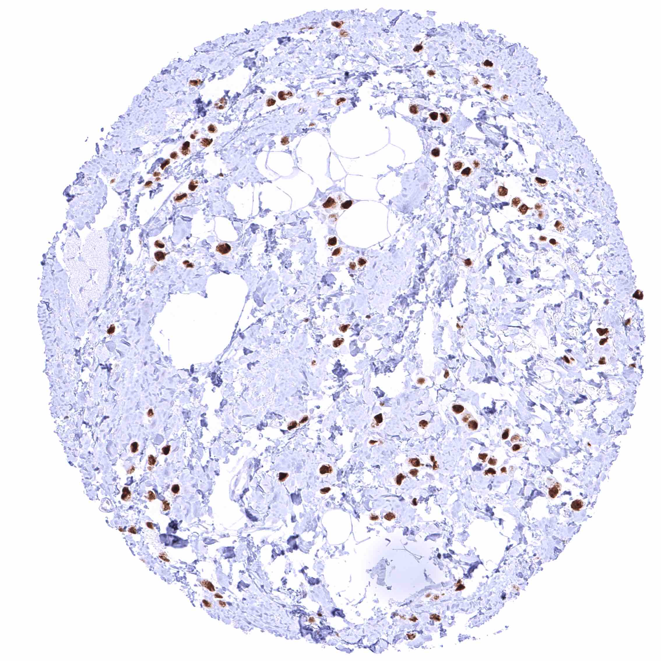 Lung – GATA3 negative squamous cell carcinoma. Numerous lymphocytes with nuclear GATA3 positivity.