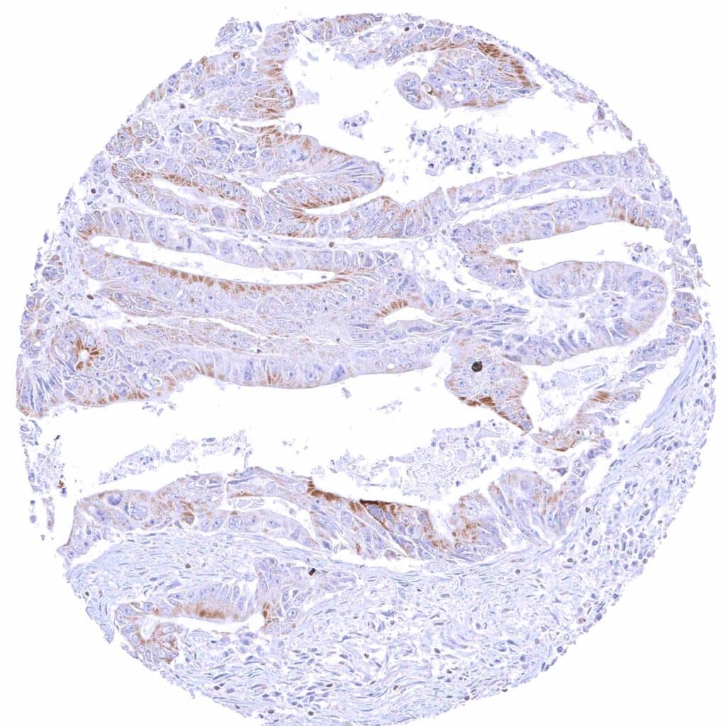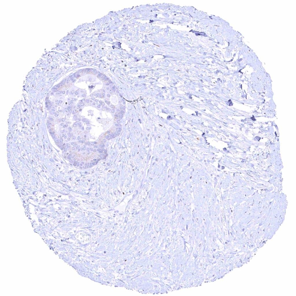 Colon – GATA3 negative colorectal adenocarcinoma. A granular cytoplasmic staining represents a tolerable antibody-specific cross-reactivity (1).