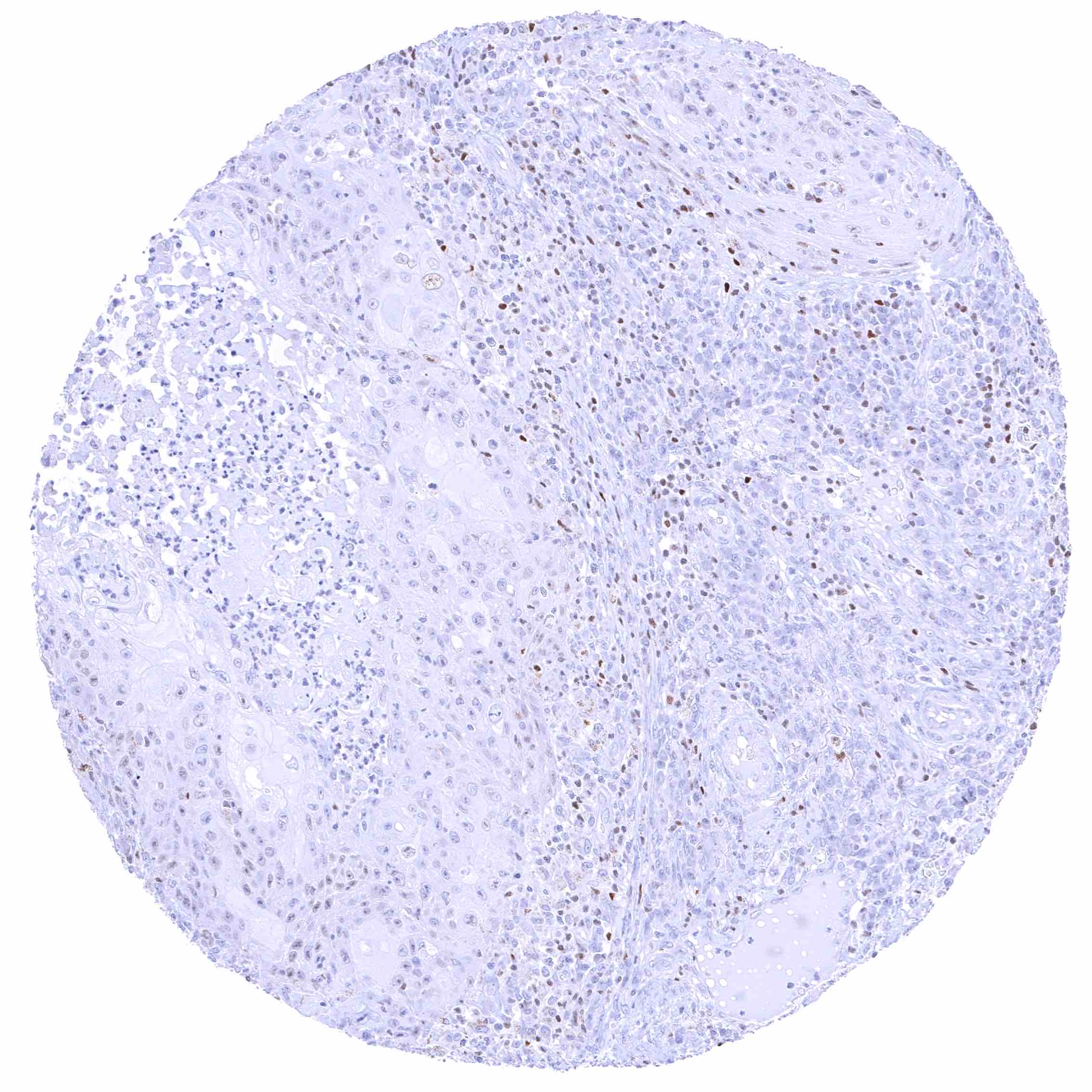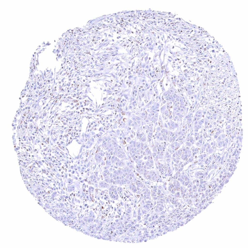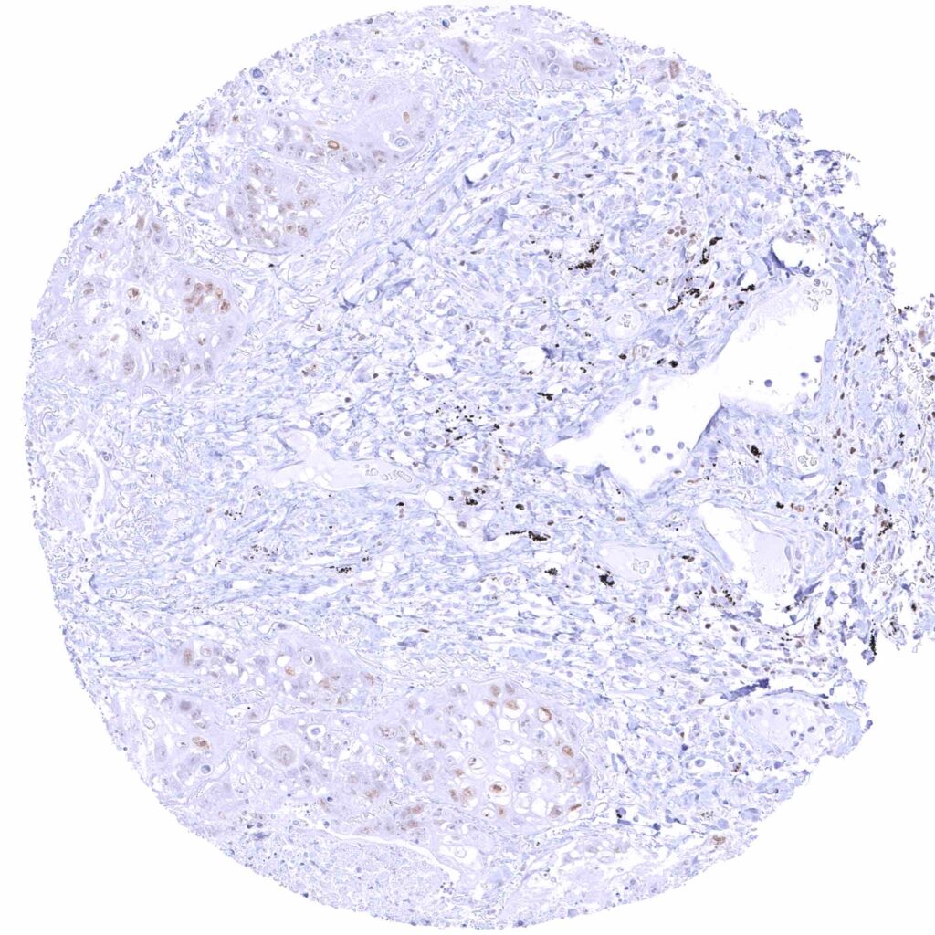 Lung – Squamous cell carcinoma with weak nuclear GATA3 staining of few tumor cells.