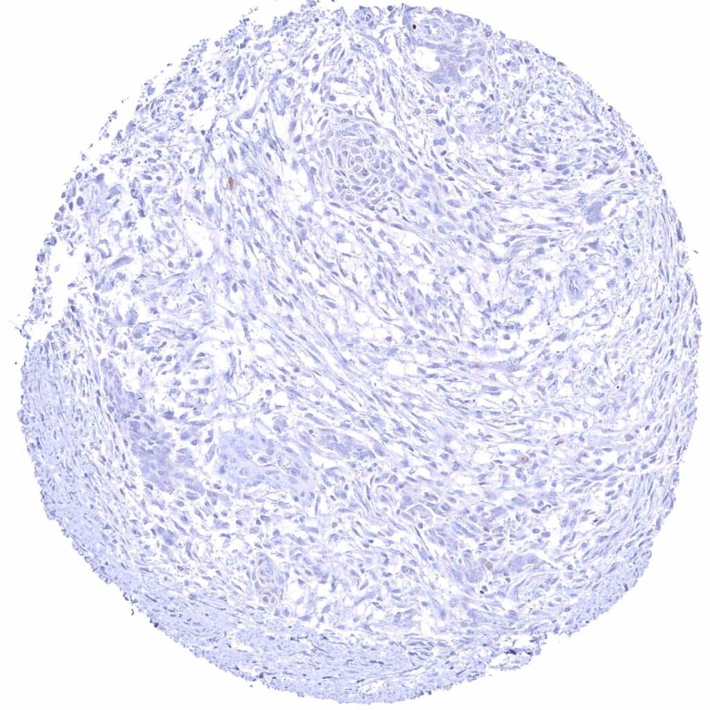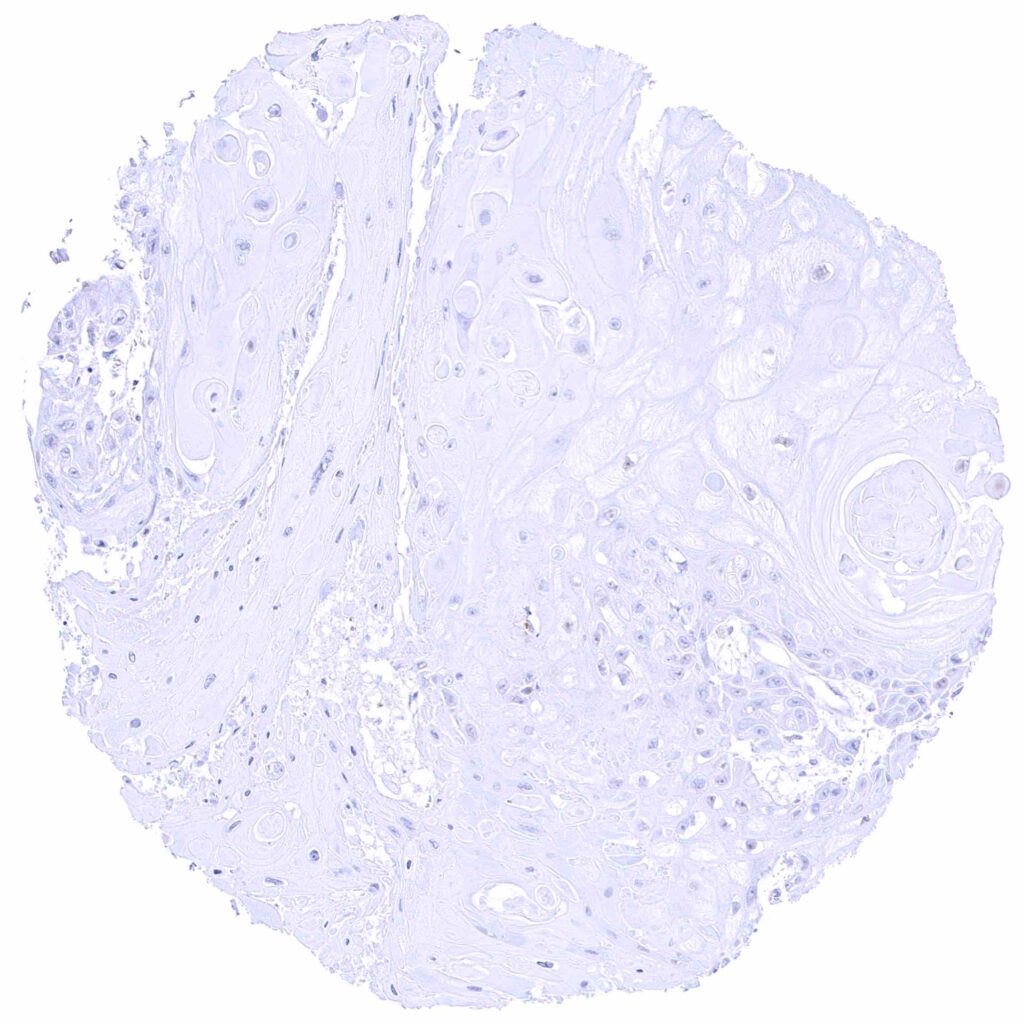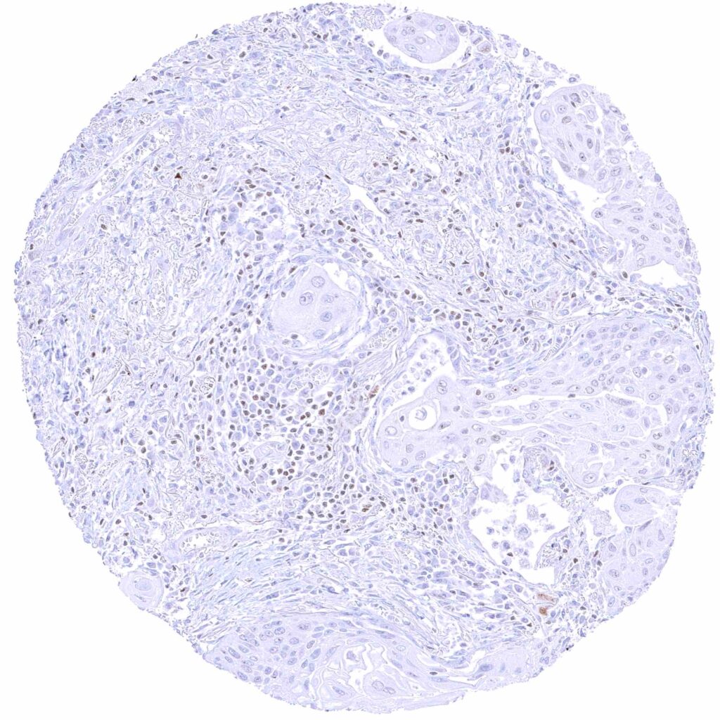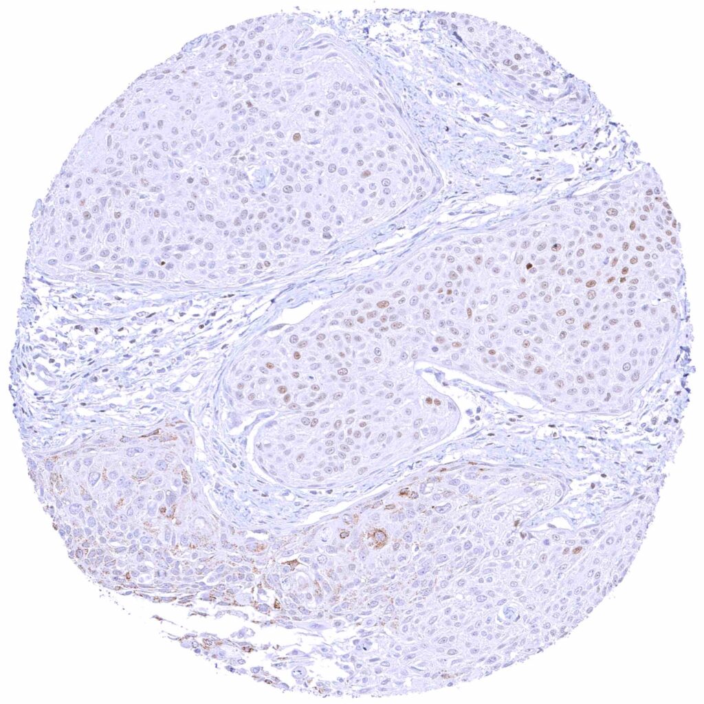 Lung – Squamous cell carcinoma with weak nuclear GATA3 staining of few tumor cells.