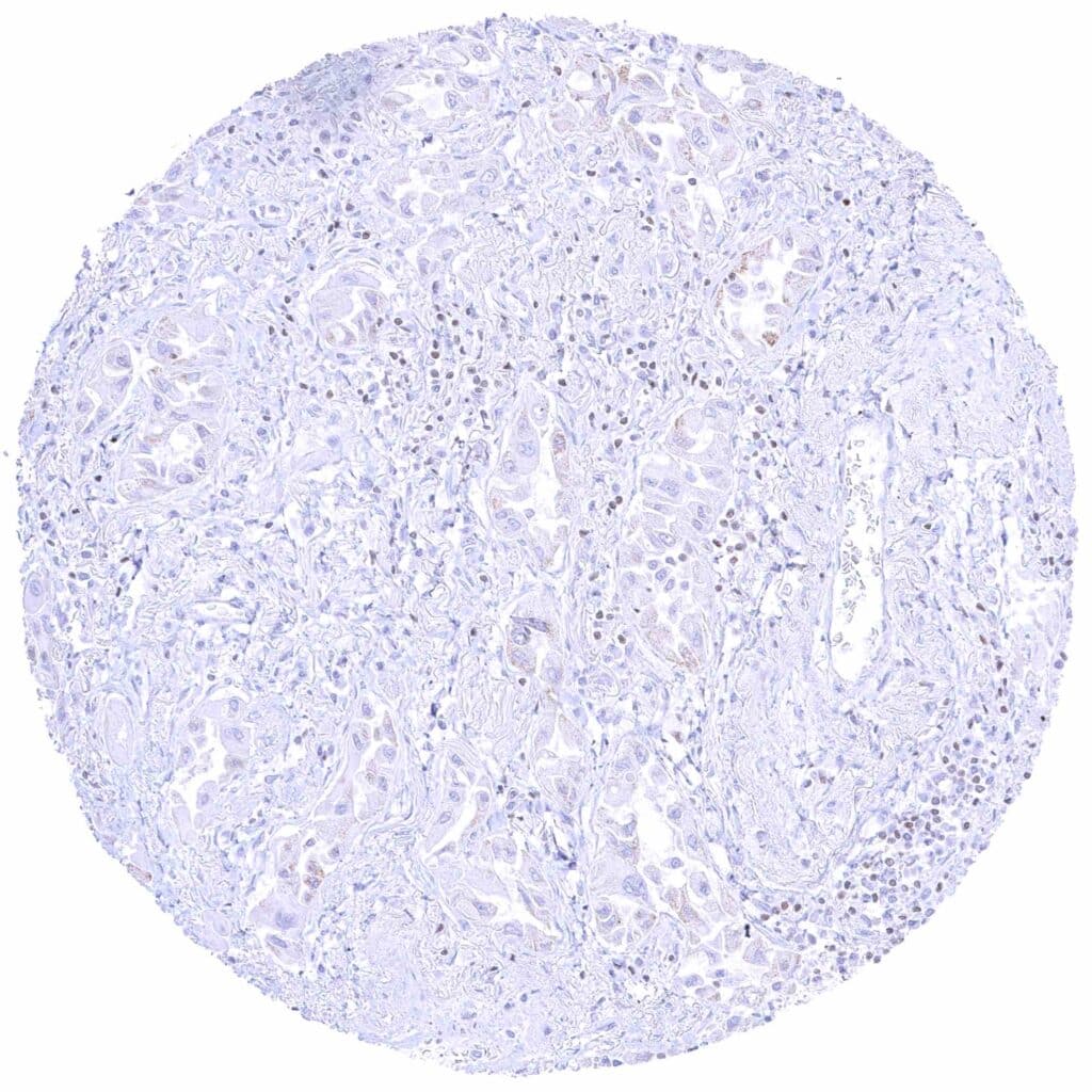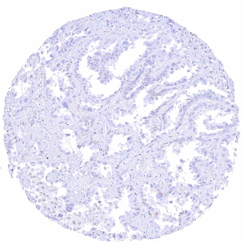 Lung – GATA3 negative adenocarcinoma. Several lymphocytes with nuclear GATA3 positivity.