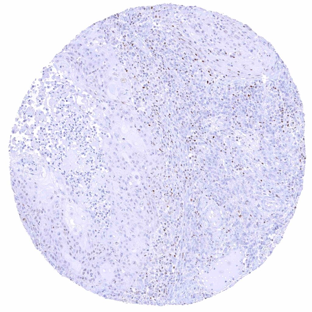 Pharynx – GATA3 negative squamous cell carcinoma. Numerous lymphocytes with nuclear GATA3 positivity.