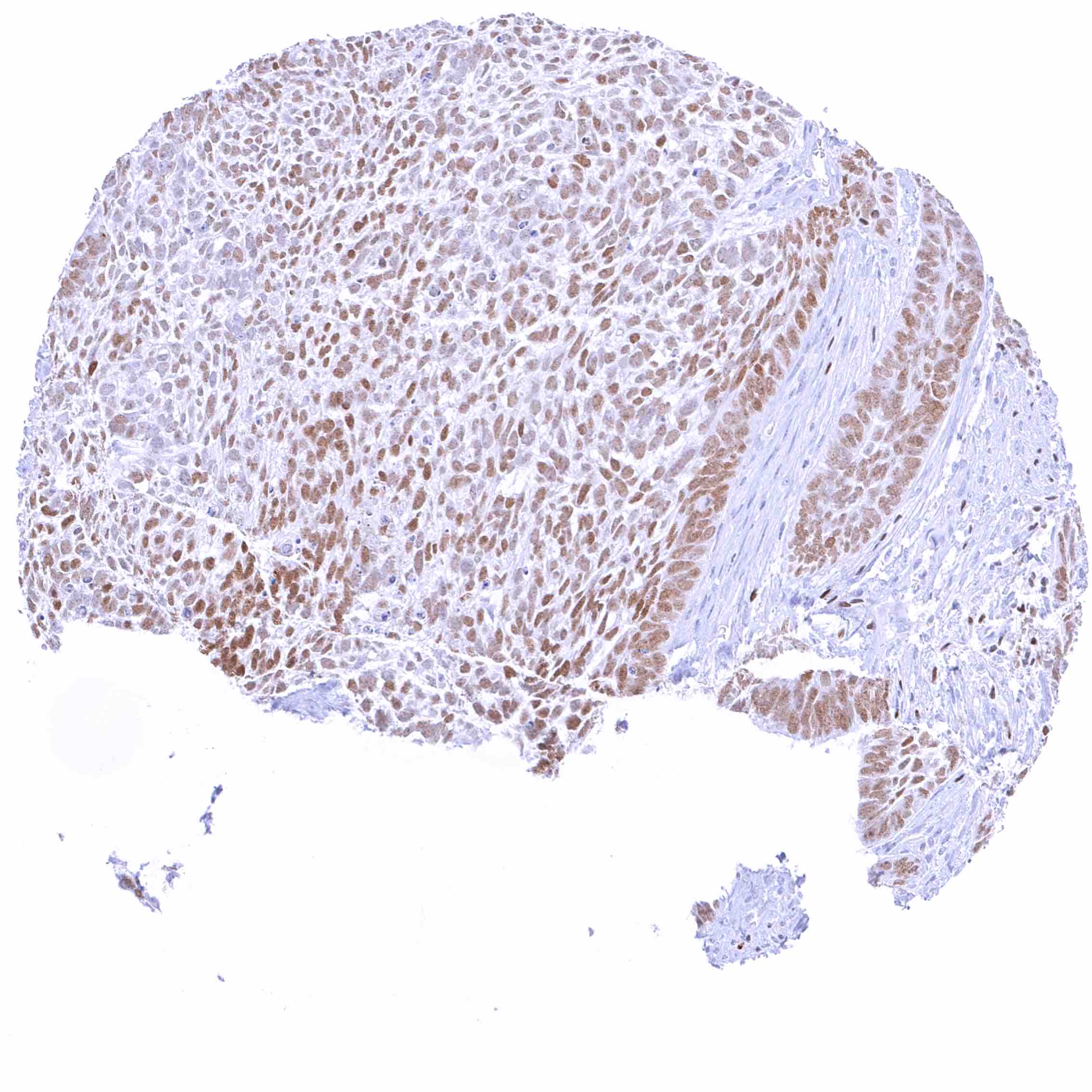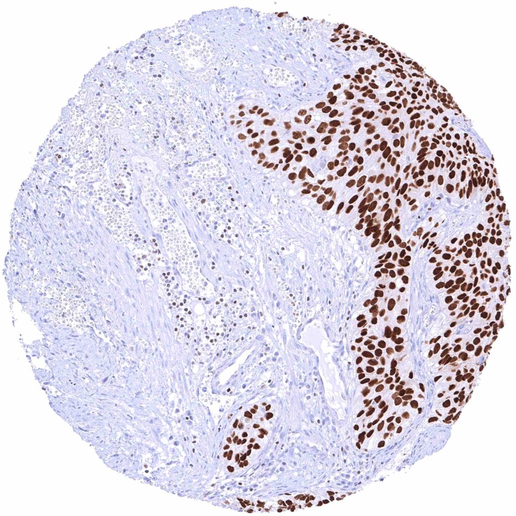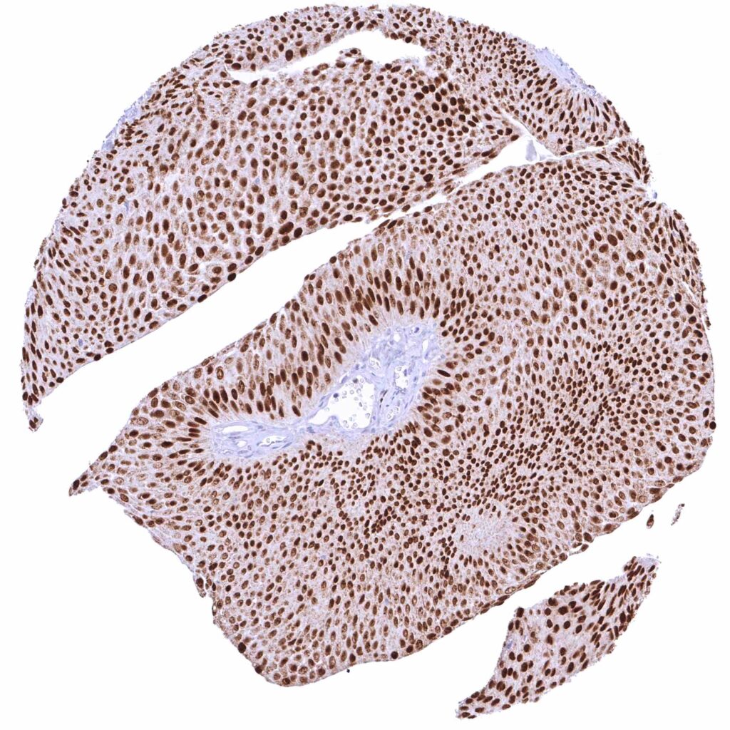 Urinary bladder – Non-invasive urothelial carcinoma with strong nuclear GATA3 staining of tumor cells.