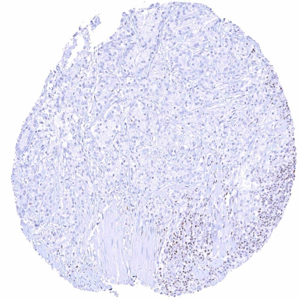 Prostate – GATA3 negative adenocarcinoma (Gleason 3+4=7). Numerous lymphocytes with nuclear GATA3 positivity.
