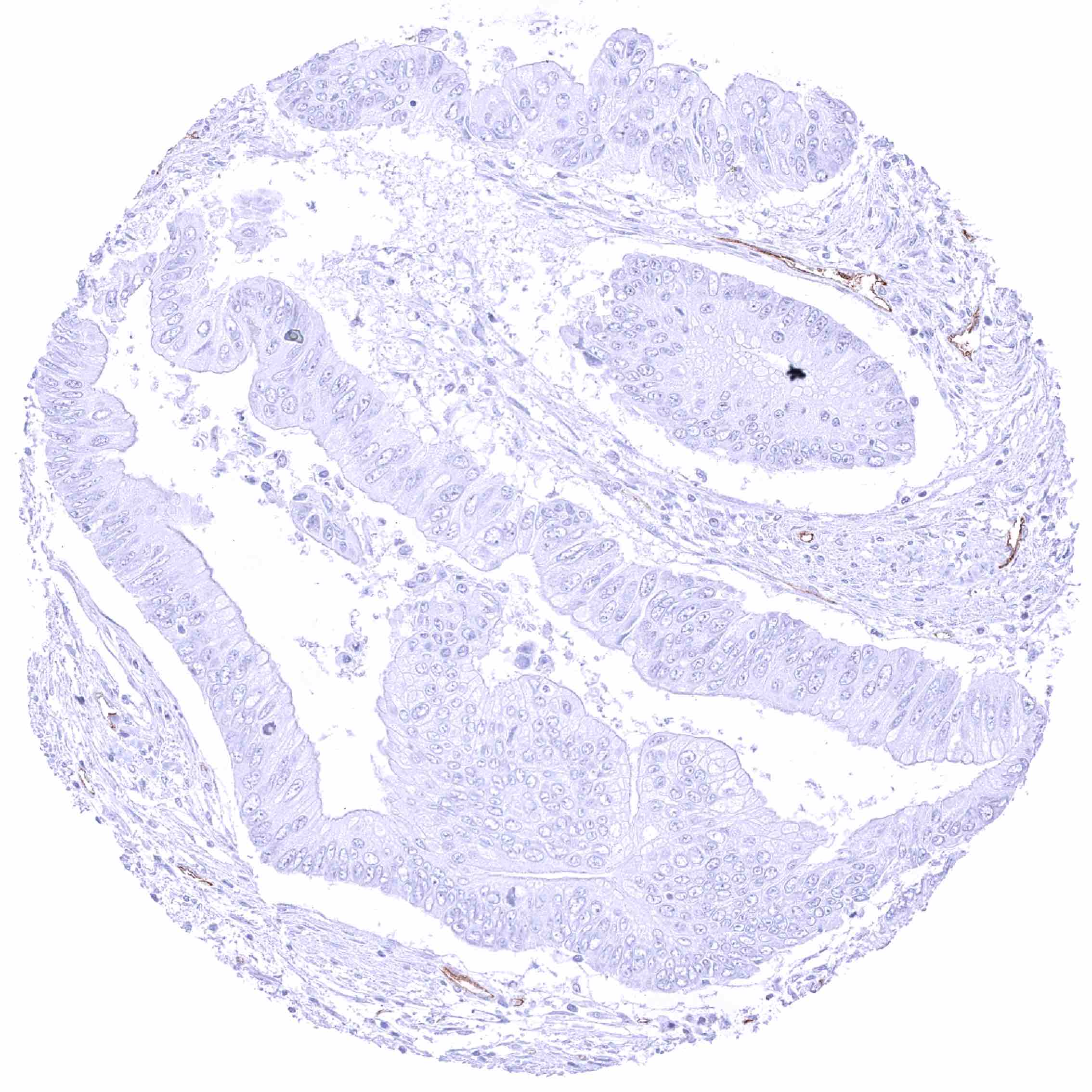 Ovary – PODXL negative serous high-grade carcinoma. Moderate PODXL positivity of endothelial cells of tumor associated vasculature.