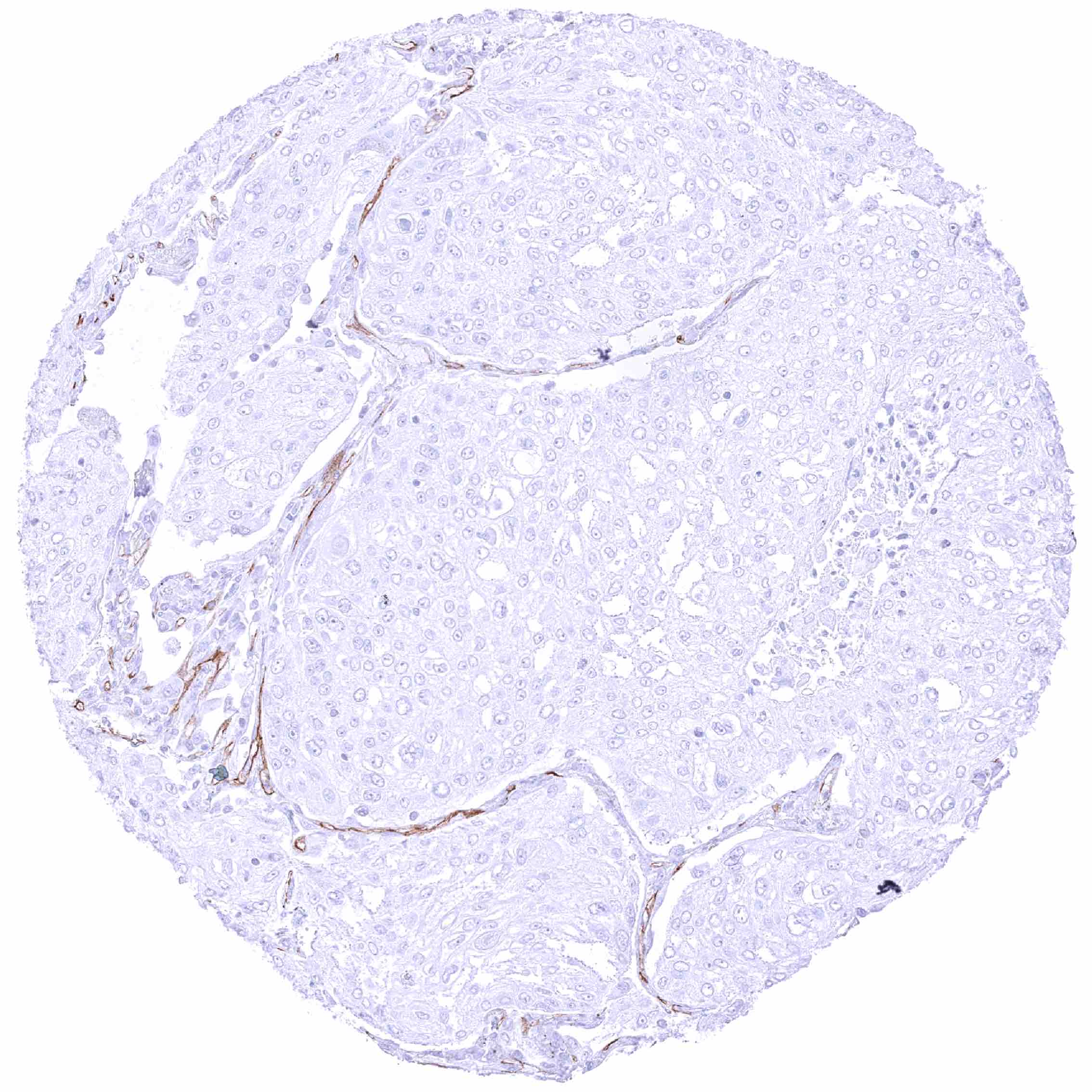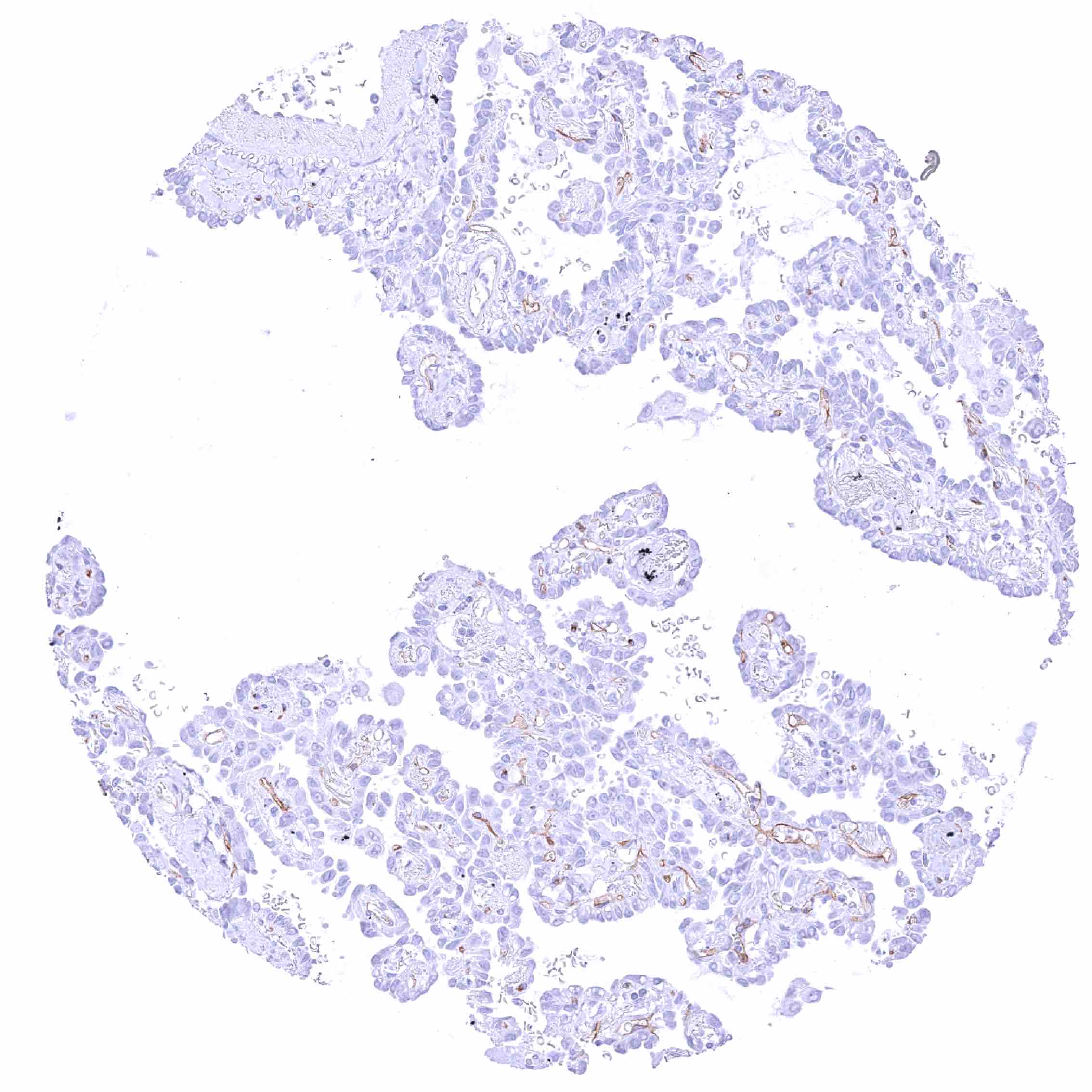 Lung – PODXL negative adenocarcinoma with strong PODXL staining of endothelial cells of tumor associated vasculature