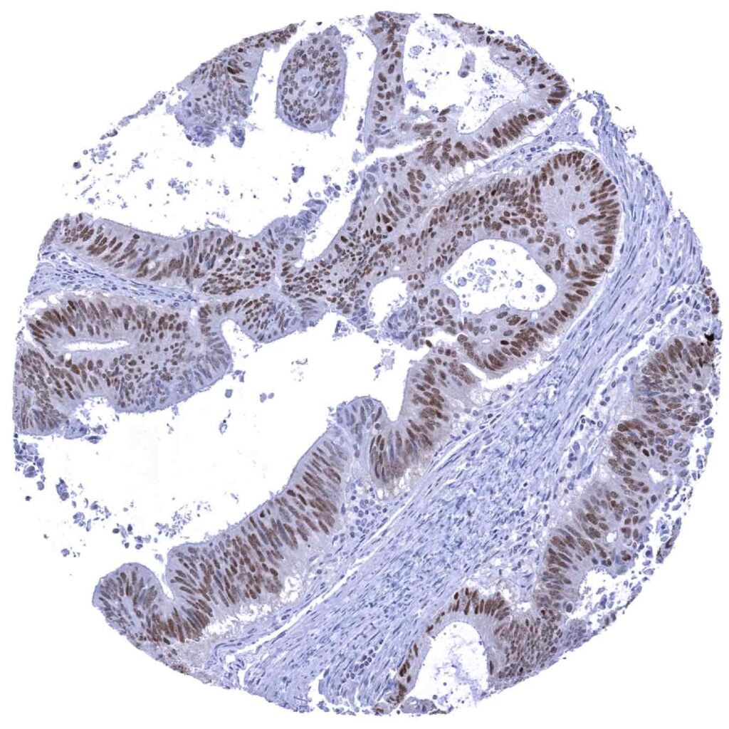 Colon – Colorectal adenocarcinoma with moderate to strong SOX9 immunostaining of tumor cells