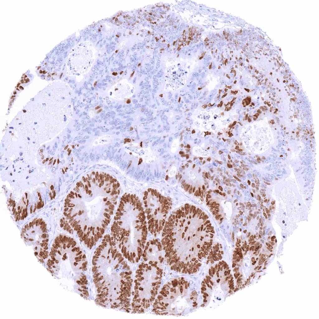 Colon – Colorectal adenocarcinoma with strong TTF1 positivity of a large fraction of tumor cells