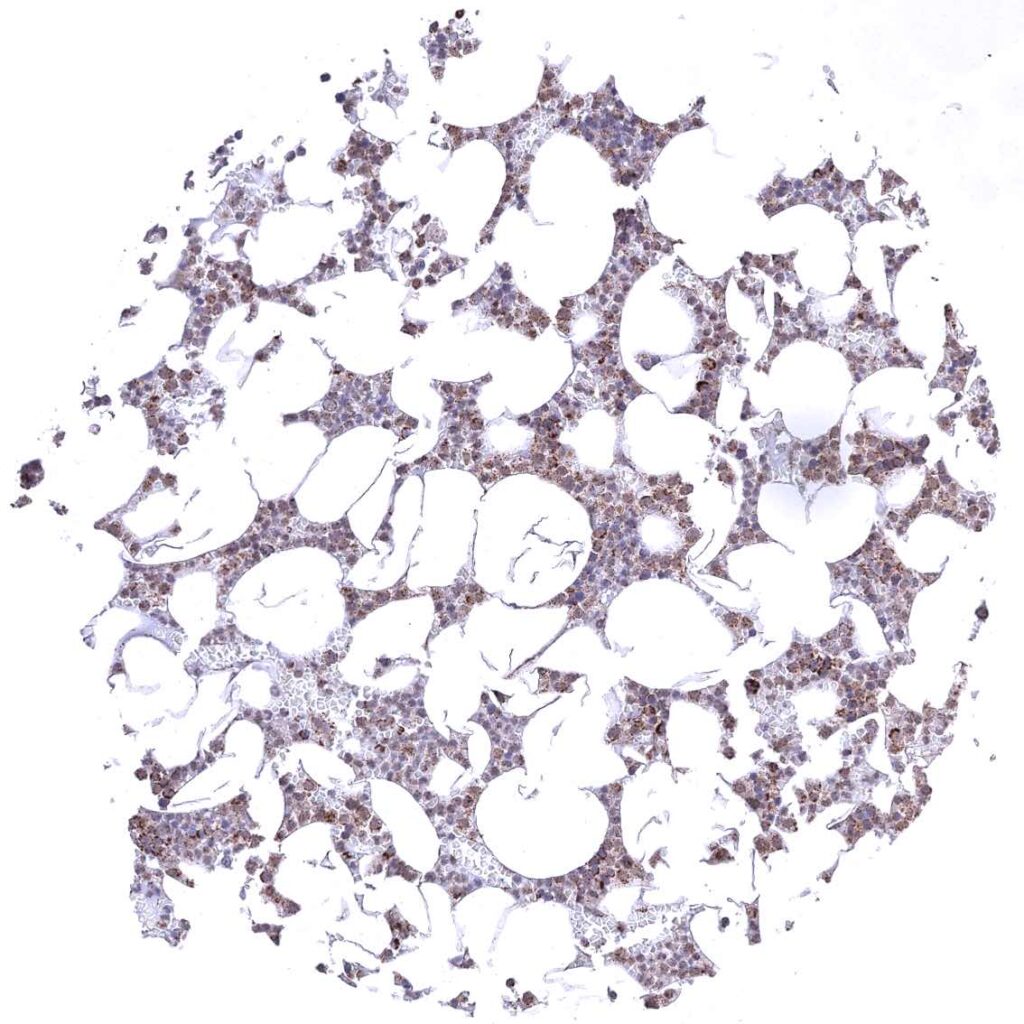 Bone marrow – Cytoplasmic ATP5J staining of variable intensity in all cell types.