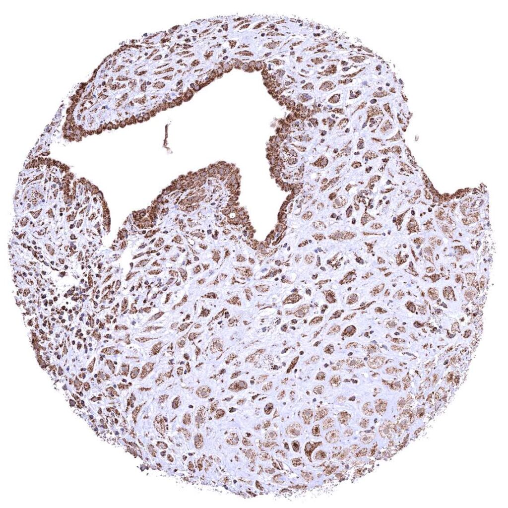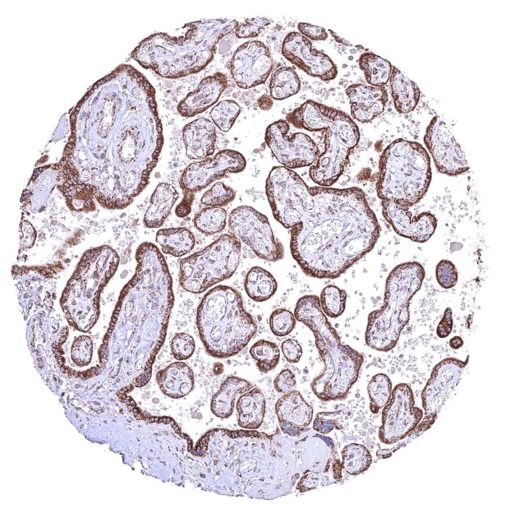Placenta (amnion and chorion) – Distinct cytoplasmic ATP5J staining of amnion and chorion cells.
