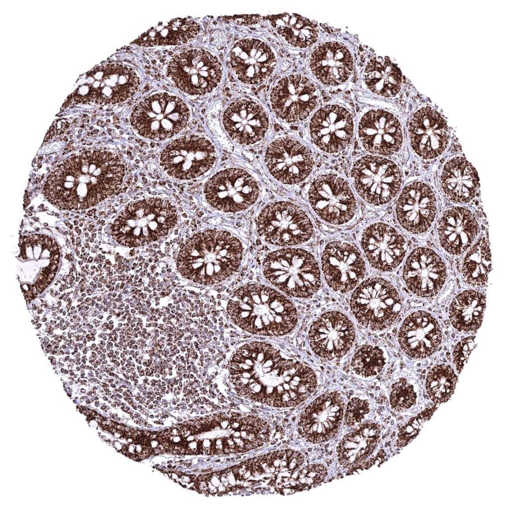 Liver – Cytoplasmic ATP5J staining is particularly intense in hepatocytes.