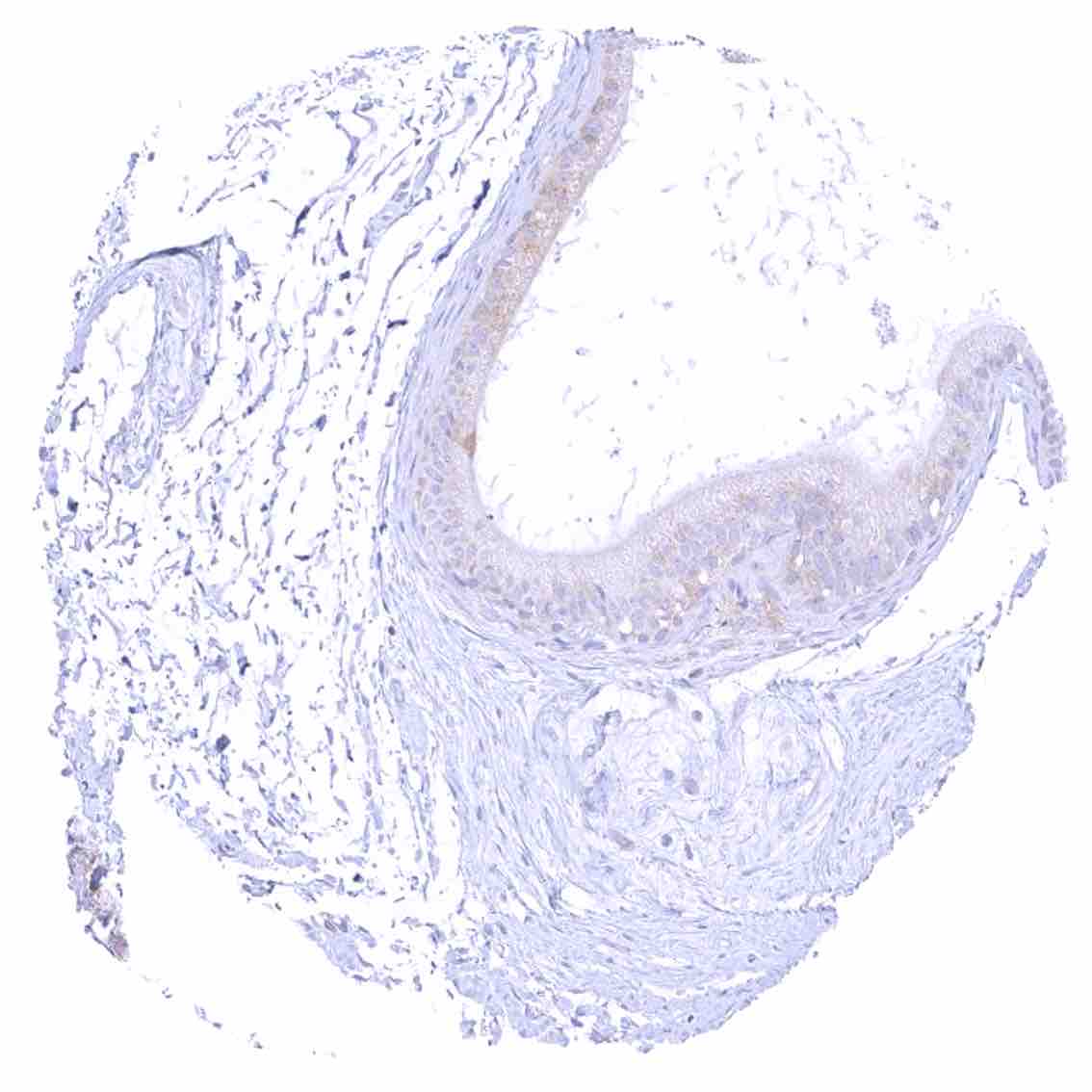 Epididymis (Cauda) – Weak bcl-2 staining of epithelial cells.