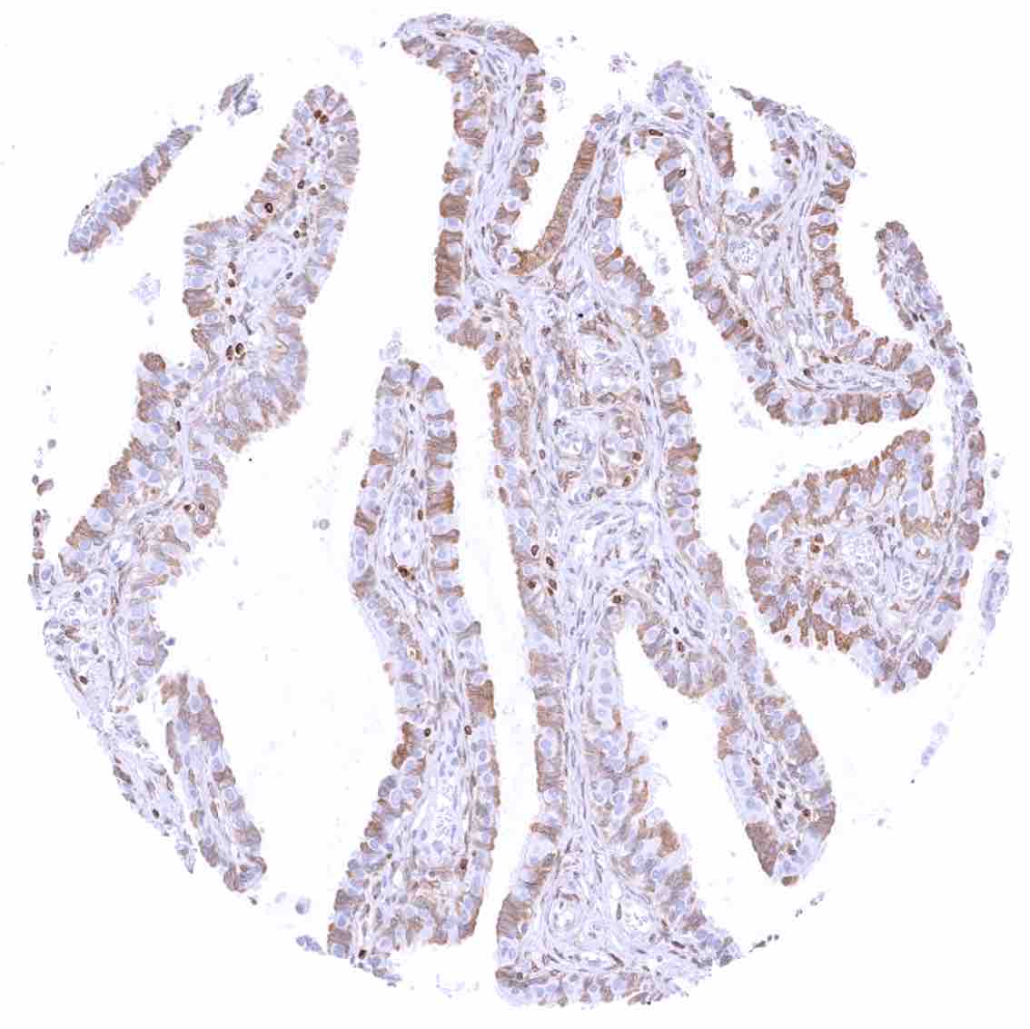 Fallopian tube, mucosa – Strong cytoplasmic bcl-2 staining of a subset of epithelial cells.
