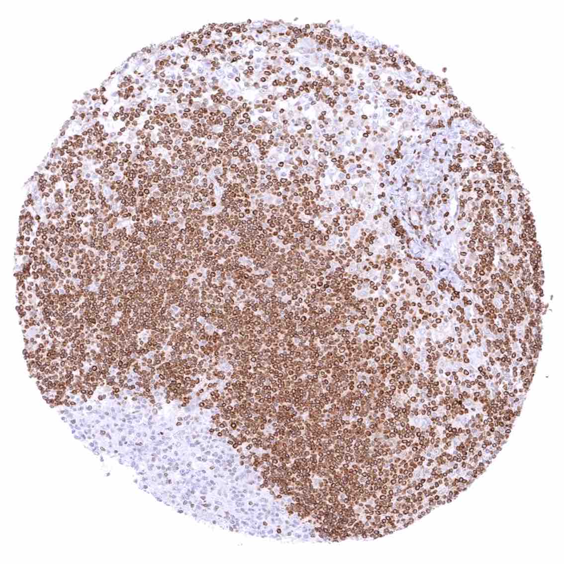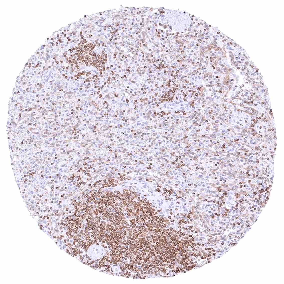 Spleen – Strong bcl-2 positivity of the lymphocytes of the white pulpa and of a small fraction of cells in the red pulpa. .jpeg
