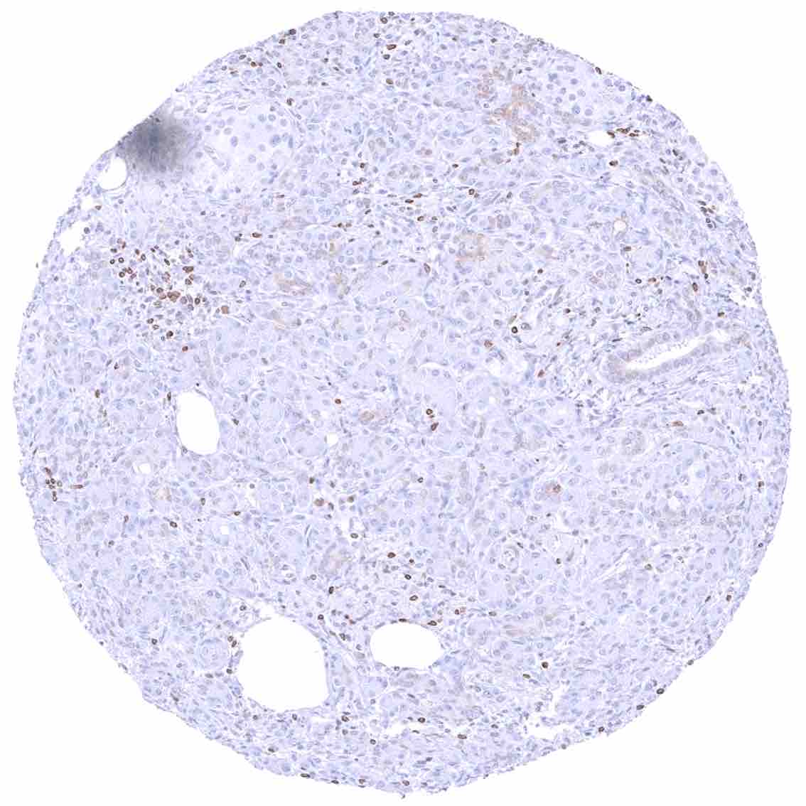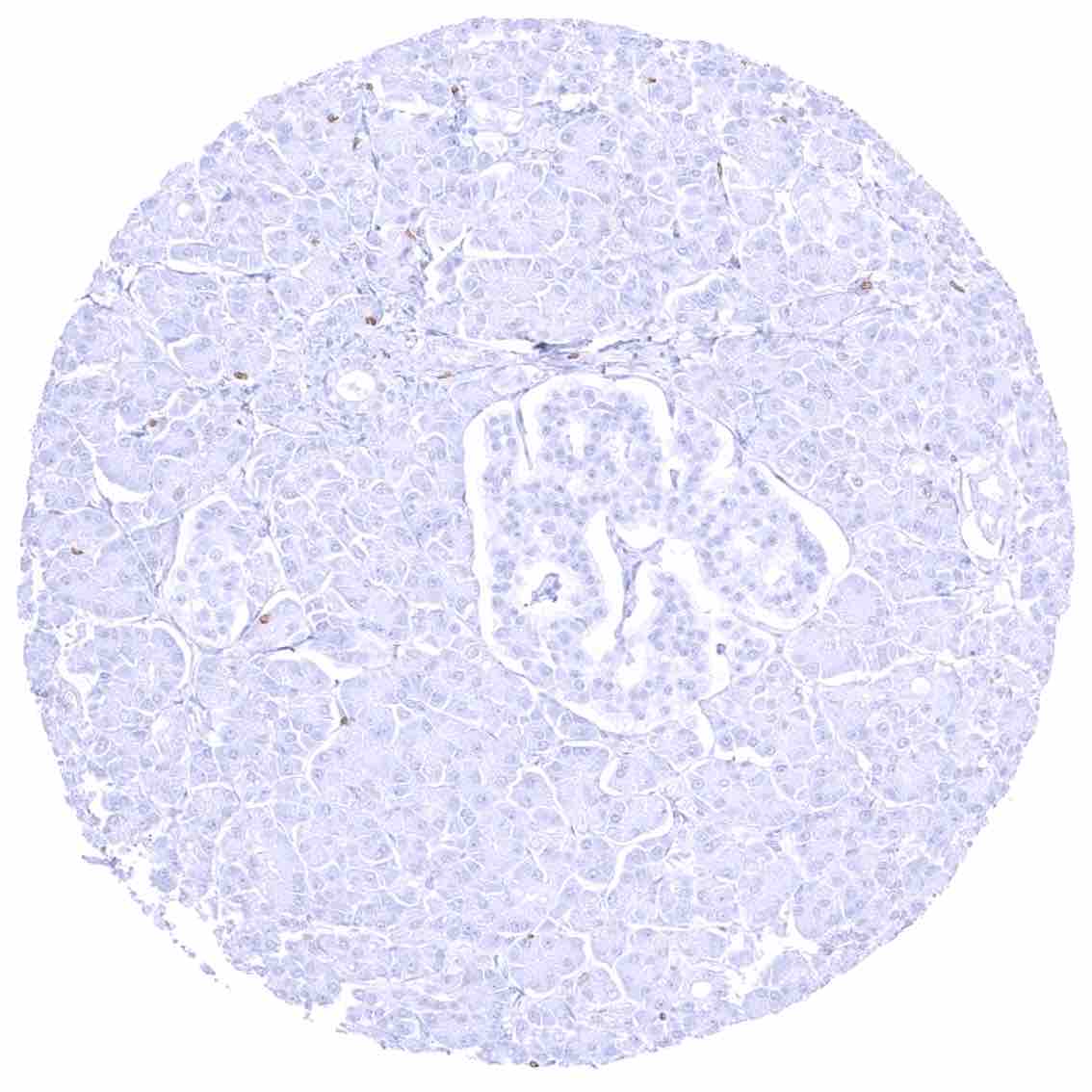 Pancreas – Weak bcl-2 staining of excretory duct cells.