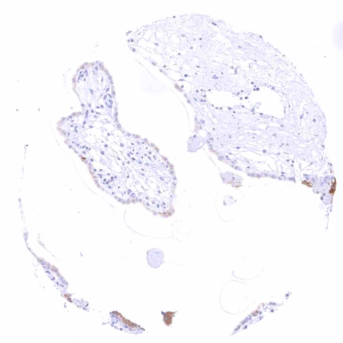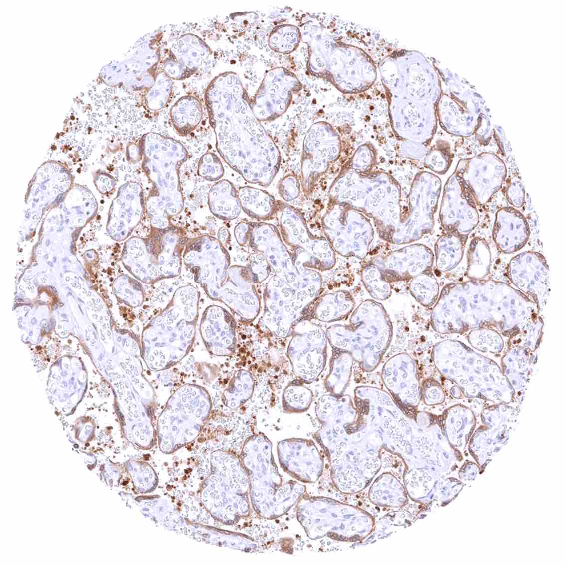 Placenta, mature – Moderate to strong cytoplasmic bcl-2 staining of trophoblast cells.