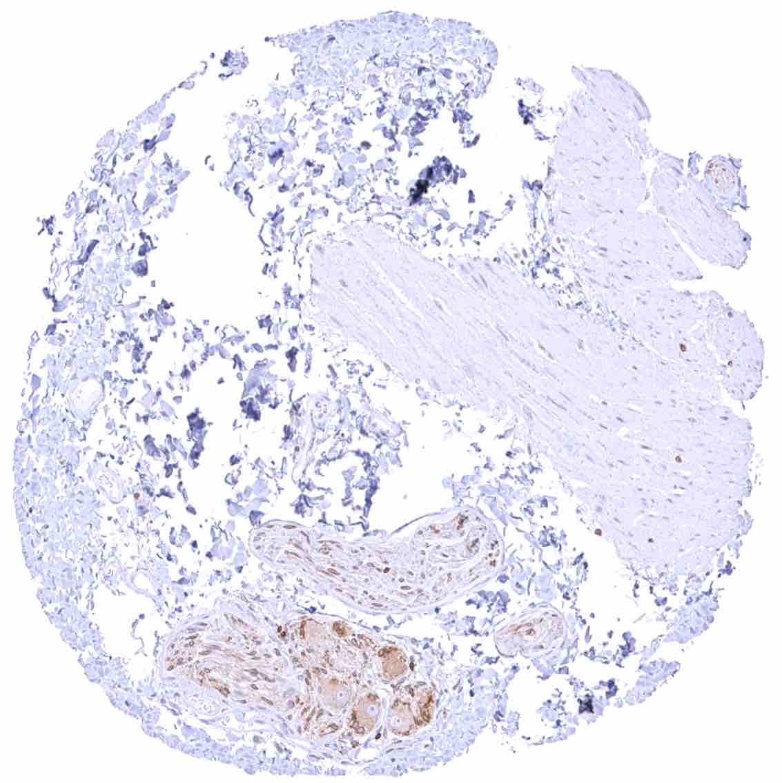 Stomach, muscular wall – Moderate cytoplasmic bcl-2 staining of nerves and ganglion cells in the muscular wall.