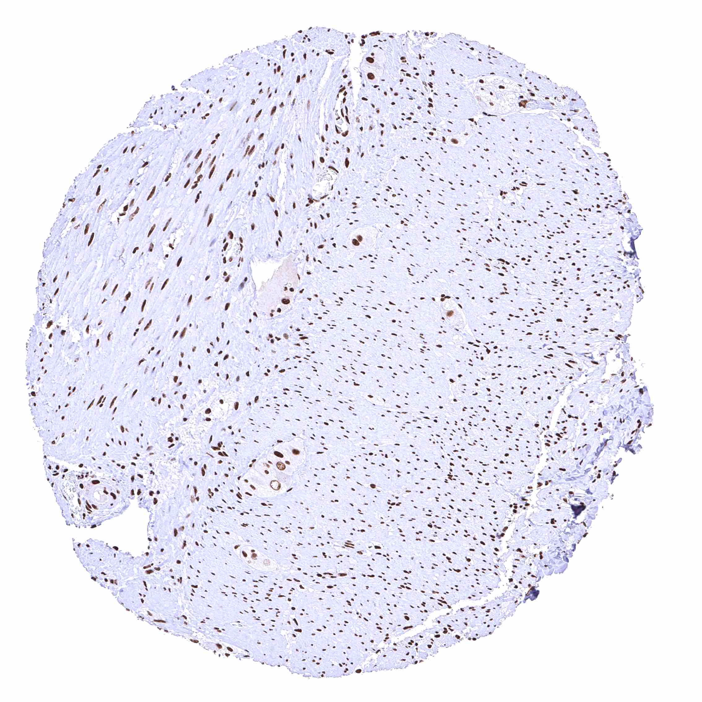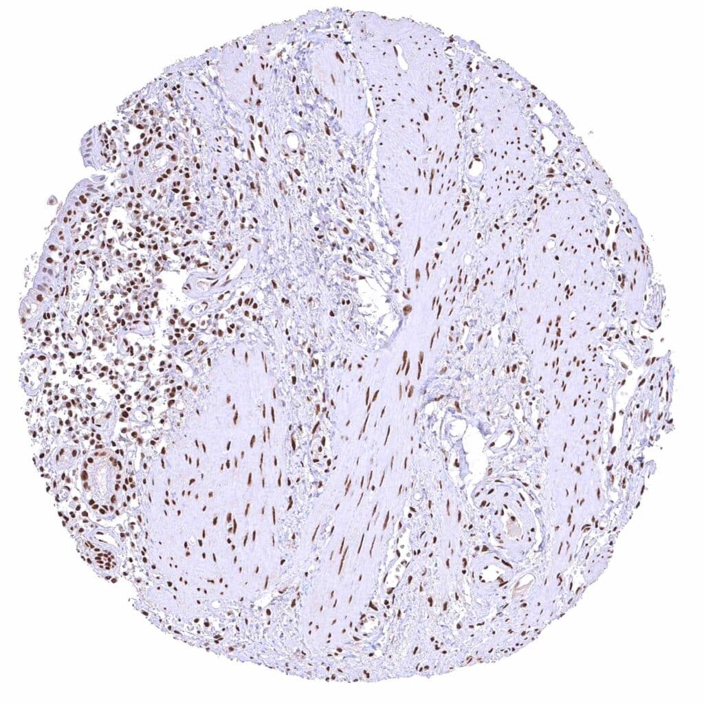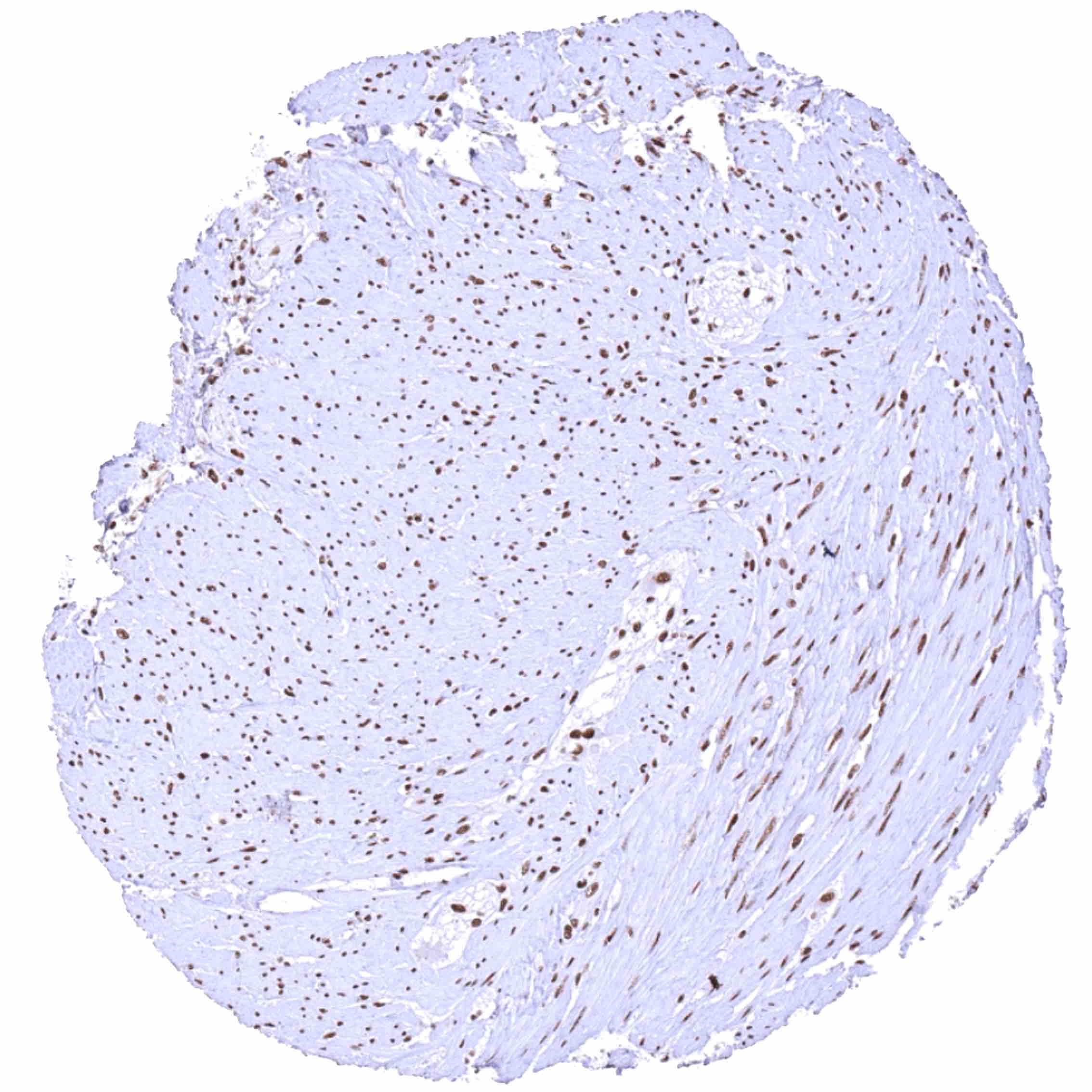Uterus, myometrium – Distinct nuclear BRD4 staining of all muscle cells.