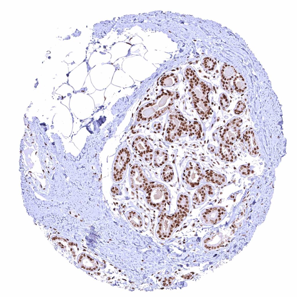 Breast – Distinct nuclear BRD4 staining of epithelial cells.