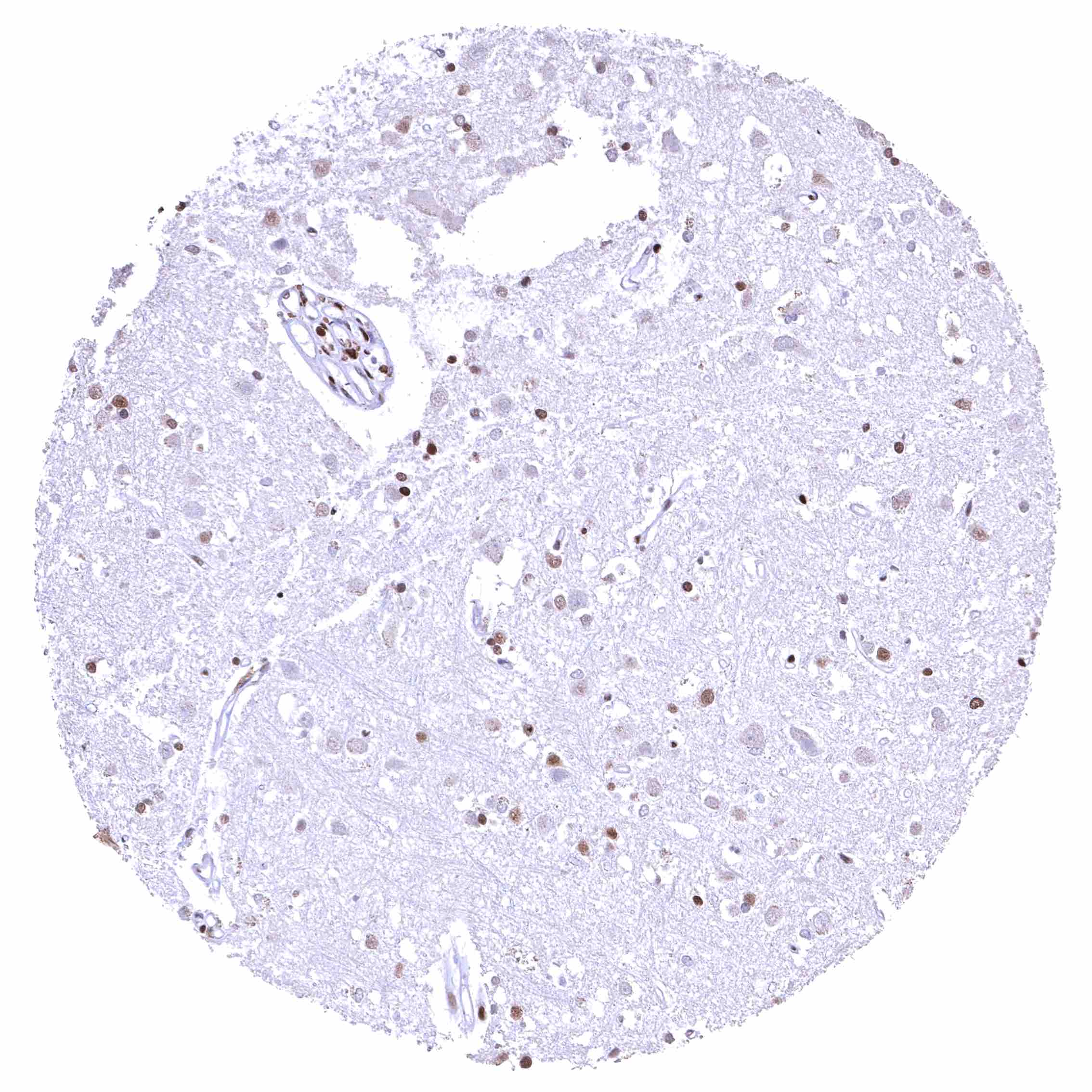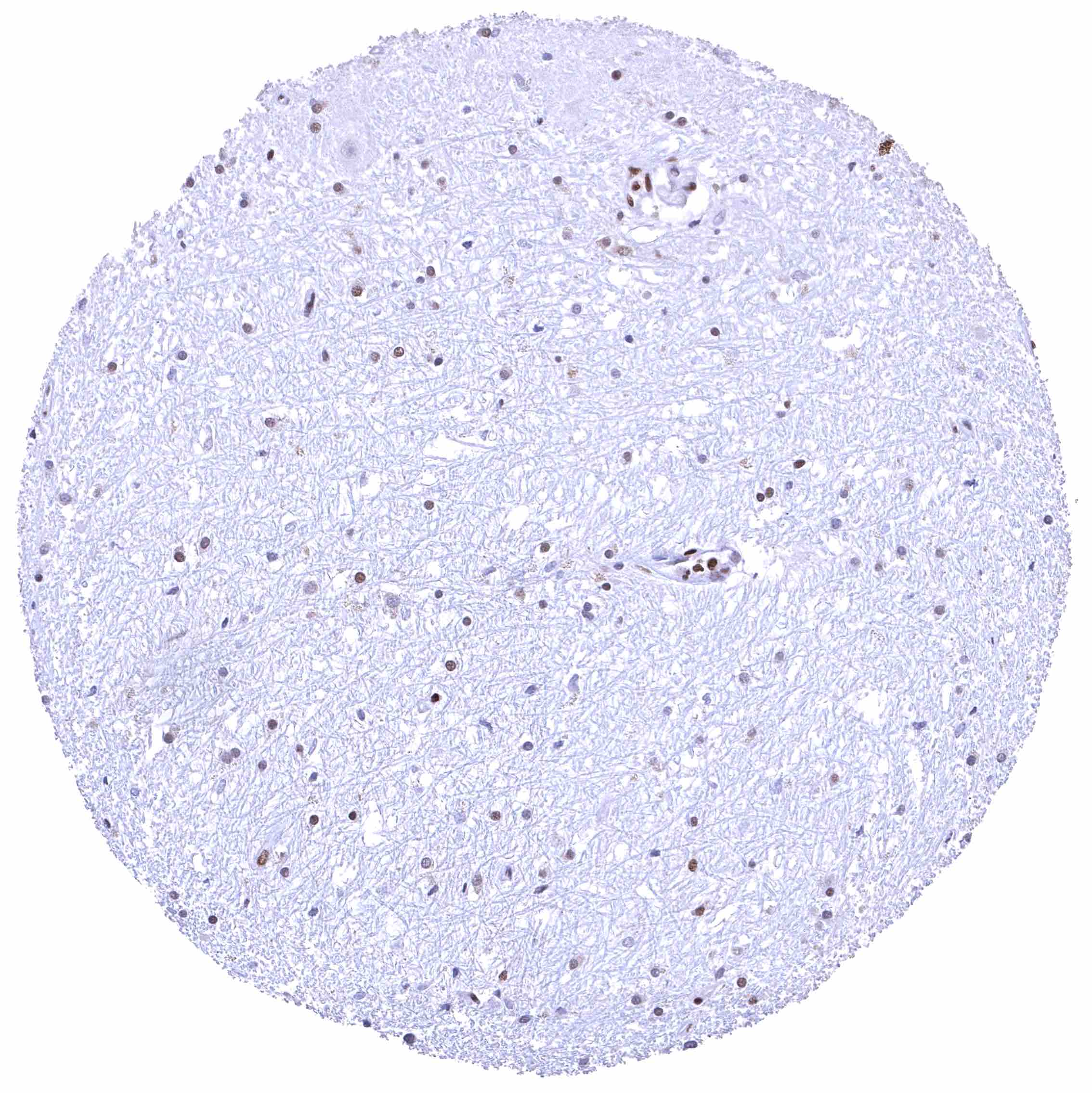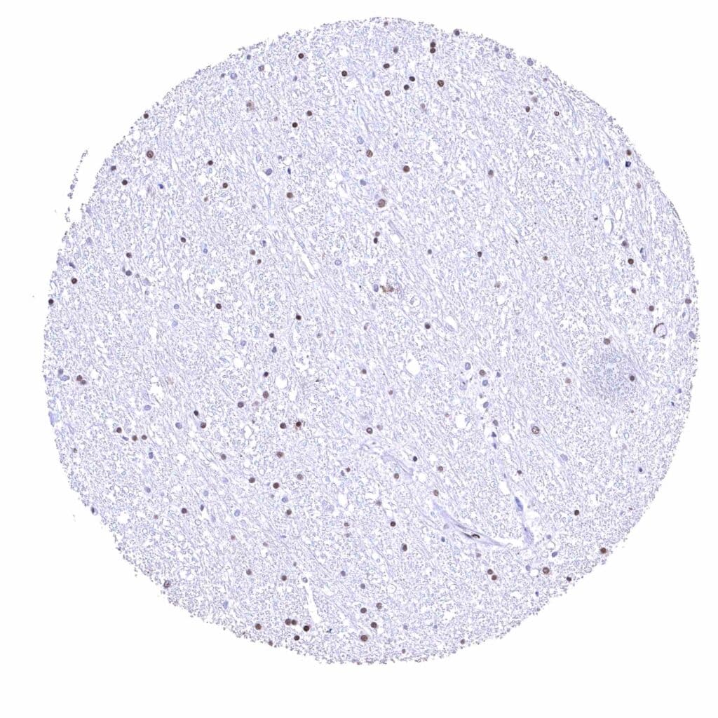 Cerebrum, white matter – Distinct nuclear BRD4 staining of glia cells.