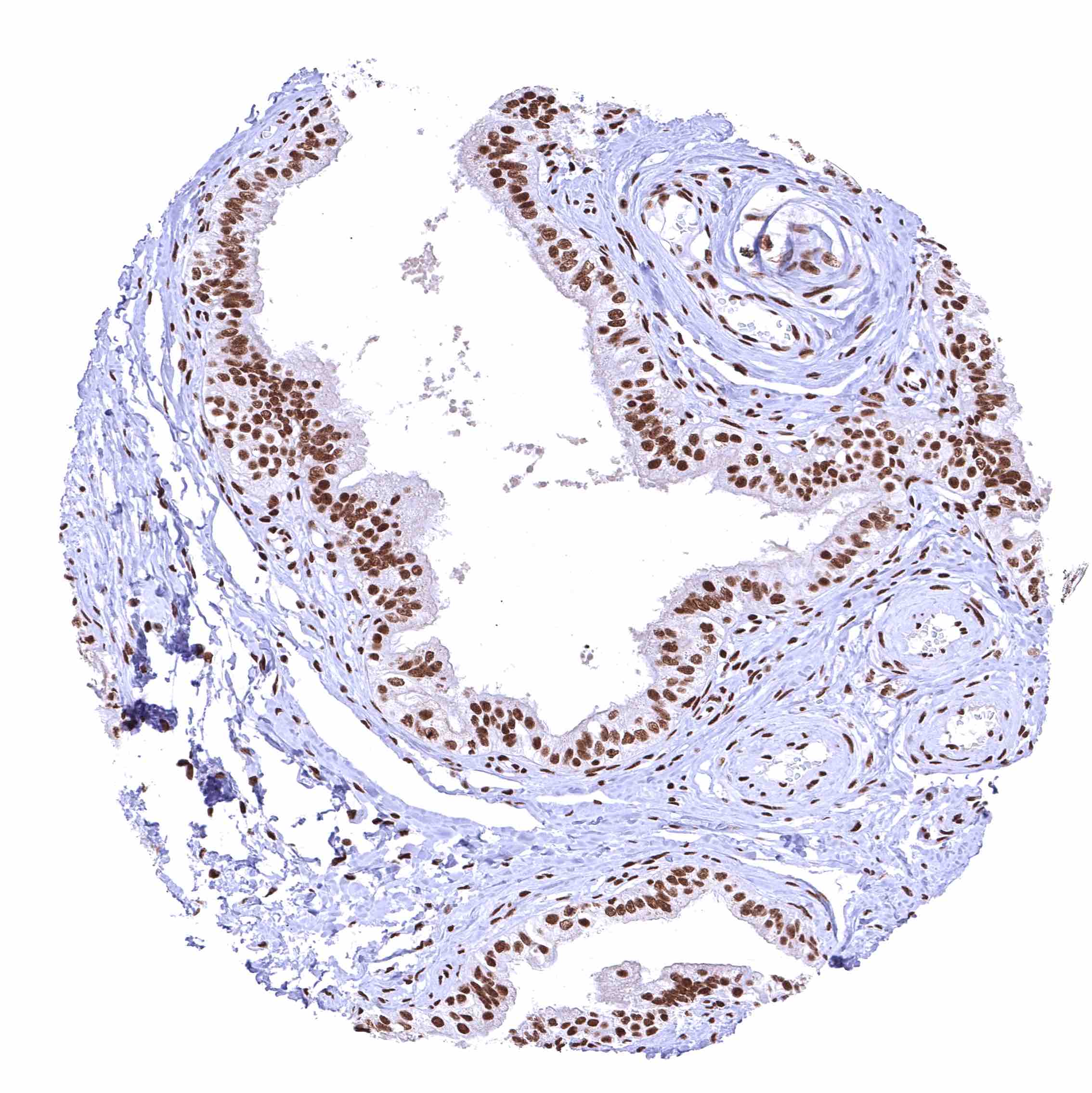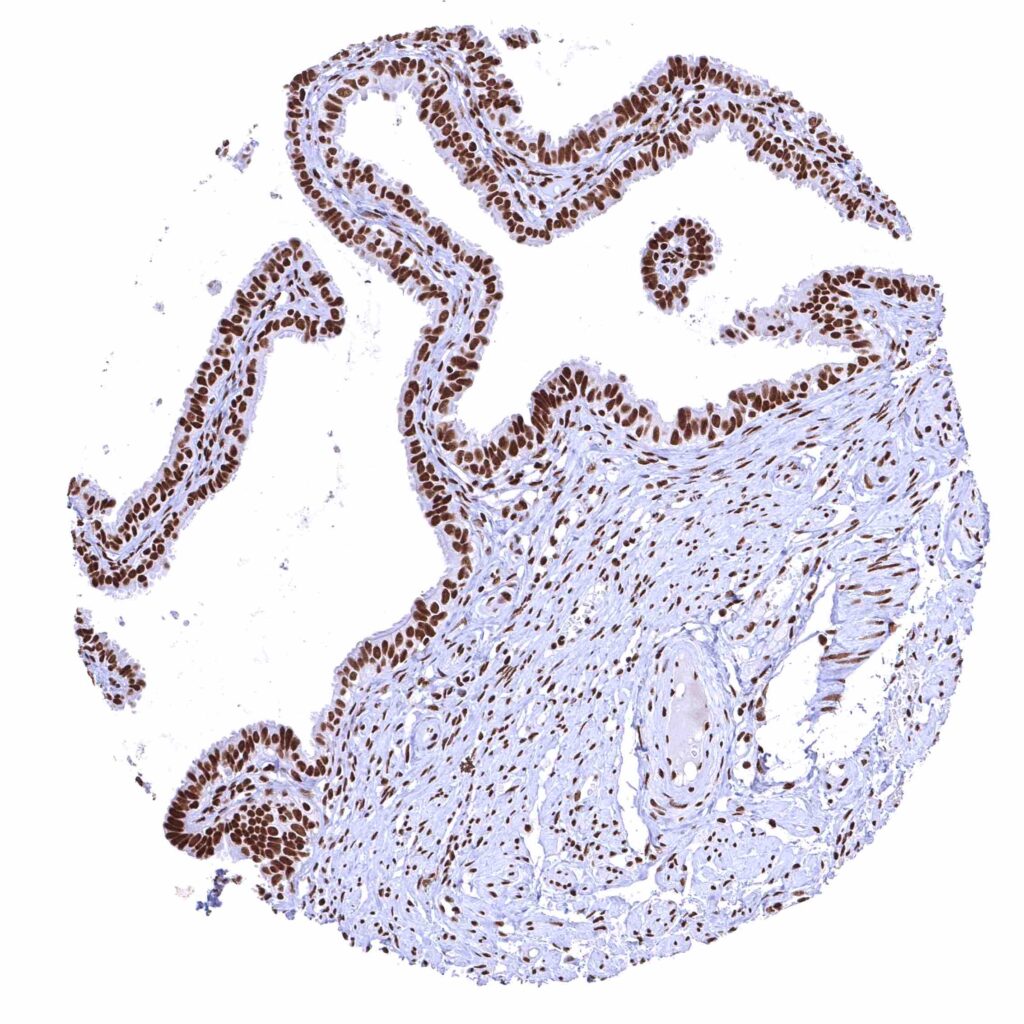 Fallopian tube, mucosa – Strong nuclear BRD4 staining of epithelial cells.