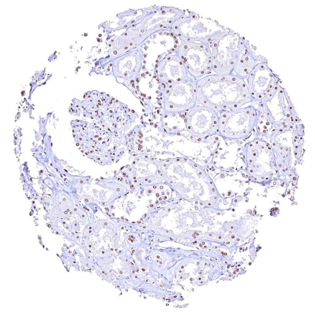 Testis – The level of nuclear BRD4 staining decreases with maturation of germ cells. .jpeg